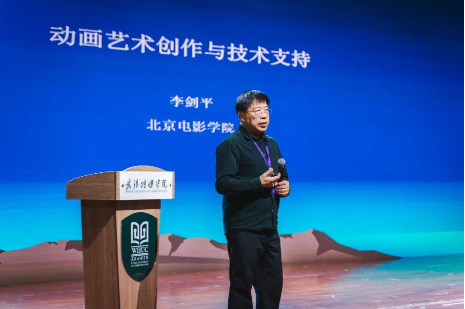 北京电影学院动画学院院长,教育部动画、数字媒体专业教学指导委员会副主任委员、中国美术家协会动漫艺委会秘书长、中国动画学会副秘书长李剑平院长以《教育动画与数字媒体》为主题进行了发言。李剑平回顾了我国多年来的艺术发展历程,语重心长地对同学们提出要求:“当年我们那一代人学习美术时,只用埋头苦学就够了。但今时不同往日,时代的洪流逼的我们所有人都必须去接触这些数字化艺术。从“人来画”到“互联网”,从“二维”变成“三维”,无一不在提醒动画艺术人必须要时时刻刻走在掌握先进技术的路上!同学们,除了好好学习专业知识,你们还应该时刻保持对于新型数字媒体技术的好奇心和敏感度。”