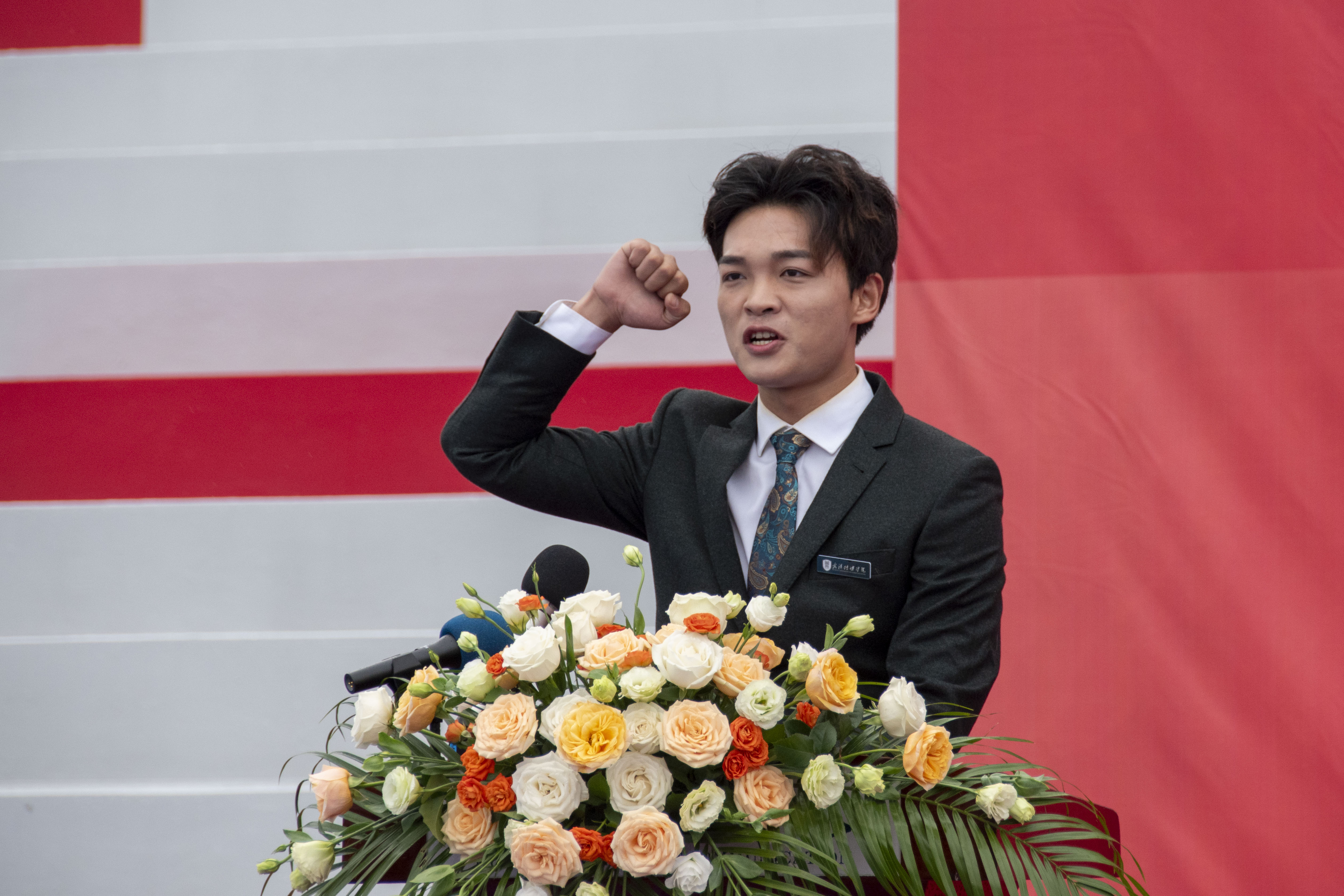 在校生代表张天亮认为,学校为大家提供了很多的平台和机遇,我们要做志存高远的梦想者、做求索真理的实干者、做与时俱进的思考者。
