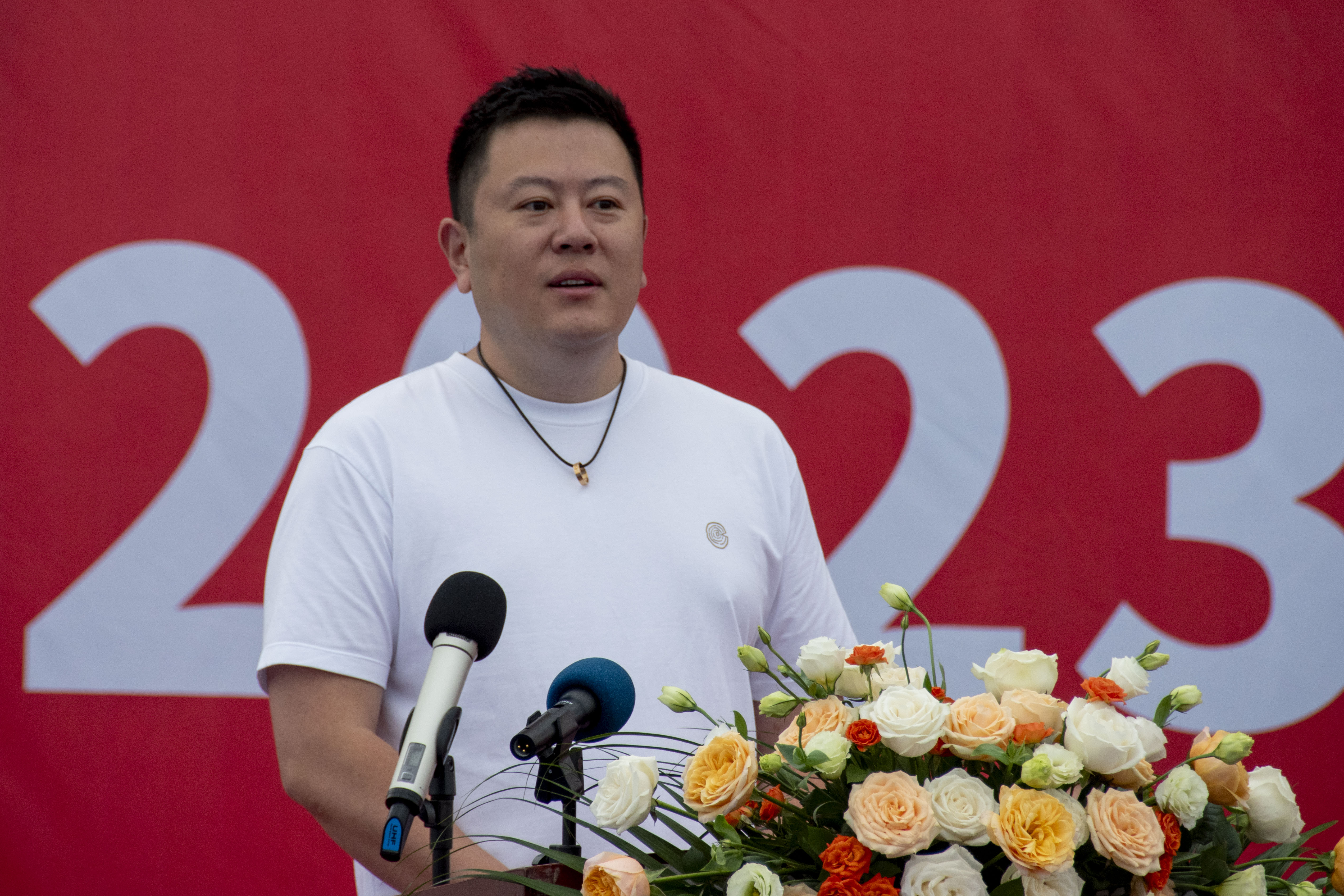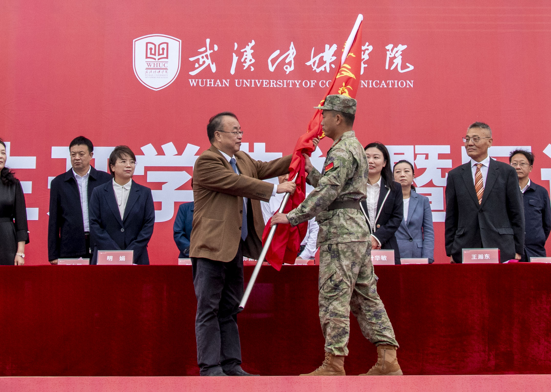 典礼最后,由党委书记郭新力为军训团授旗。自此,我校2023级新生开学典礼暨军训动员大会圆满结束。