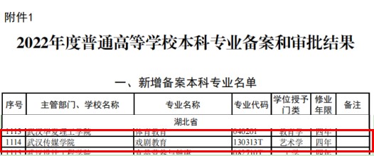 武传新闻网讯(通讯员 周晨颜)近日,教育部下发《教育部关于公布2022年度普通高等学校本科专业备案和审批结果的通知》(教高函〔2023〕3号),公布了2022年度高等学校本科专业设置备案和审批结果,我校电影与电视学院申报的戏剧教育专业成功获批。