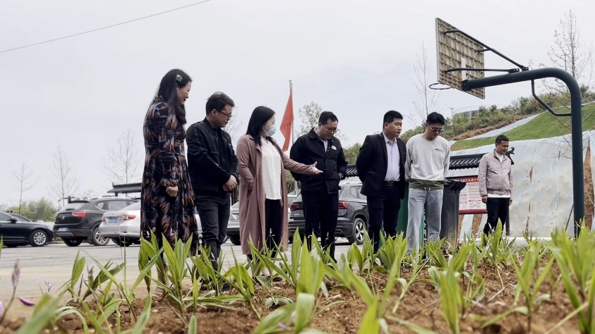 蒋萦一行先后前往西庄村白芨中药材种植基地、菖蒲中药材种植基地、村级主干道改建施工地、西庄村牡丹园田园综合体进行实地考察。随后与“天门谷”研学基地项目负责人交流基地规划,设计校企合作计划,了解西庄村第一季度重点项目建设开展情况,并在西庄村村委召开座谈会。