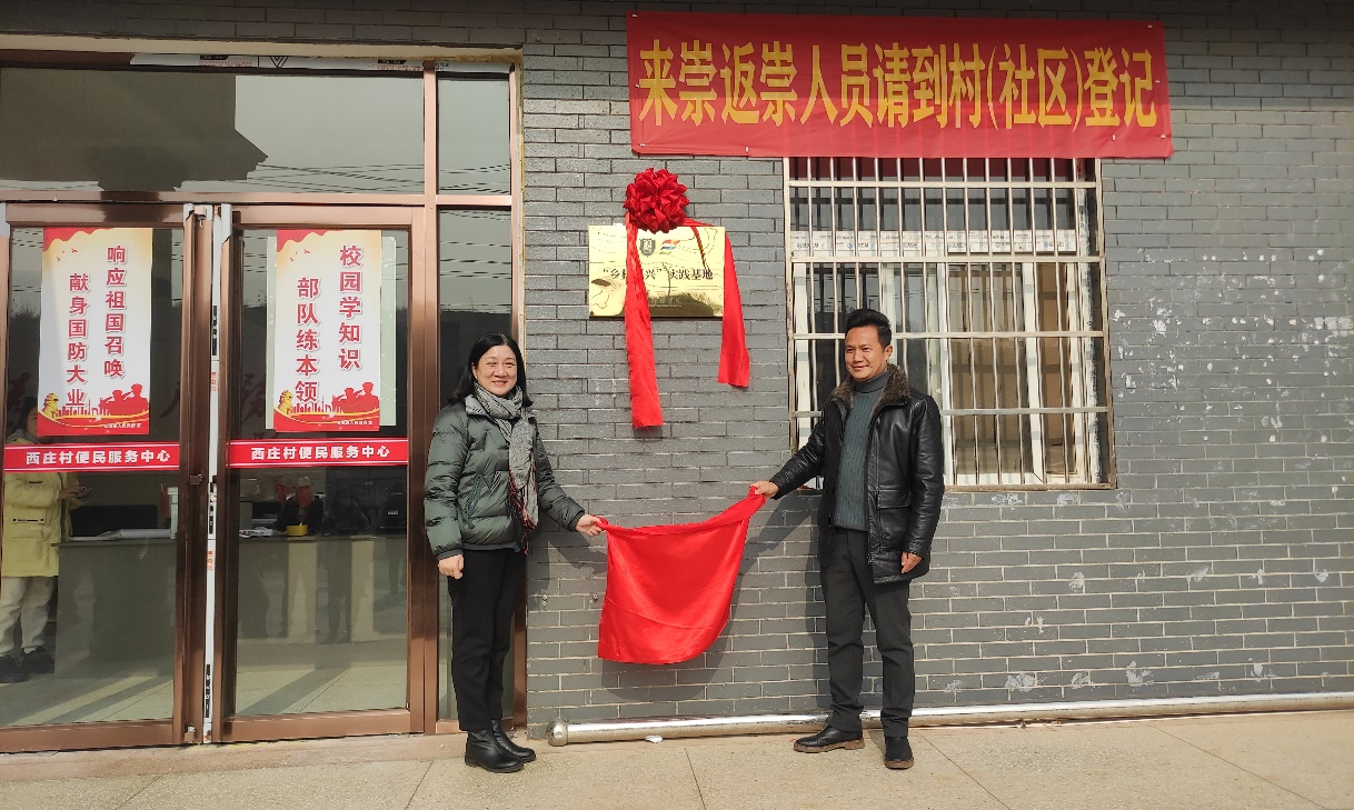 座谈会后,宗微与西庄村党支部书记熊存志一同为乐竞平台“乡村振兴”实践基地揭牌。