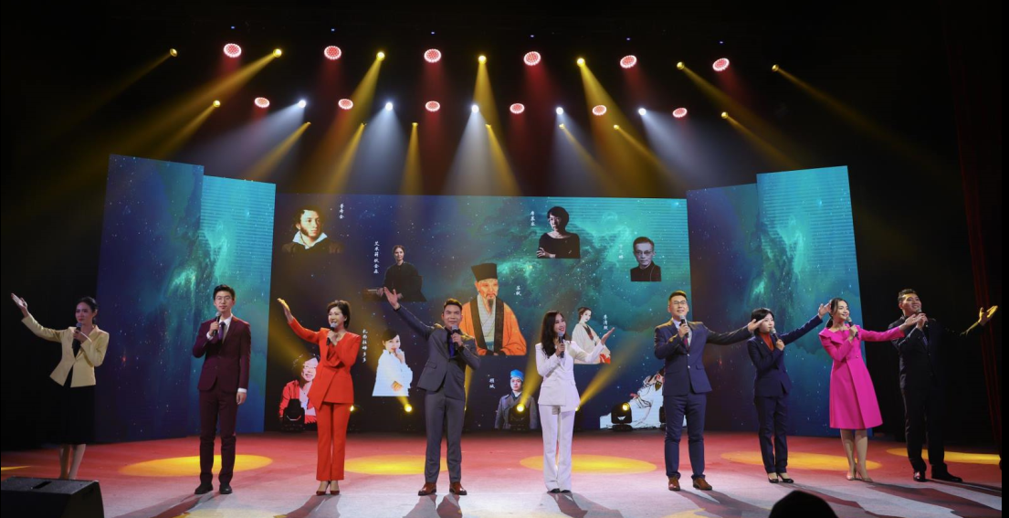“那是梅子黄时雨,遗梦到徽州。”黄梅时节多雨的江南、白墙黛瓦的徽州水墨山水寄托着怨女的哀愁与思念。华中师范大学学生表演的《遗梦到徽州》,将幺妹苦等出外经商的恋人悲痛的情绪传递给每一位观众。最具特色的当属武汉大学的朗诵节目《遇见珞珈》,该节目稿件由表演者李昊阳原创,6名表演者用激情歌颂了校园美景,抒发对母校的热爱。晚会接近尾声,孙志博、姜庆、洪子亮等9位老师组成的“明星导师团”的《月夜的徘徊》,以独特的表现形式让苏轼和李清照、普希金等人物对话,一上台就抓住了观众的眼球。