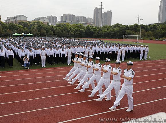 最后,由9位教官进行动作示范。“稍息”“向后转”“齐步走”,整齐划一的动作赢得在场领导与新生们的热烈掌声。我校2017级新生开学典礼暨军训动员大会也接近尾声,各个队伍在教官的带领下有序地前往训练场地,开始为期十天的训练。
