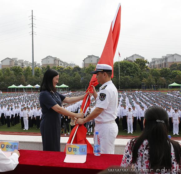 “愿你们常怀感恩之心,不忘初心。绝不为利益取悦他人,绝不因成绩低估自己。”播音主持艺术学院院长助理夏露老师作为教师代表发言时,表达了对新生们的殷切期望。随后,常务副校长宗微代表学校向军训团团长授军训团团旗。