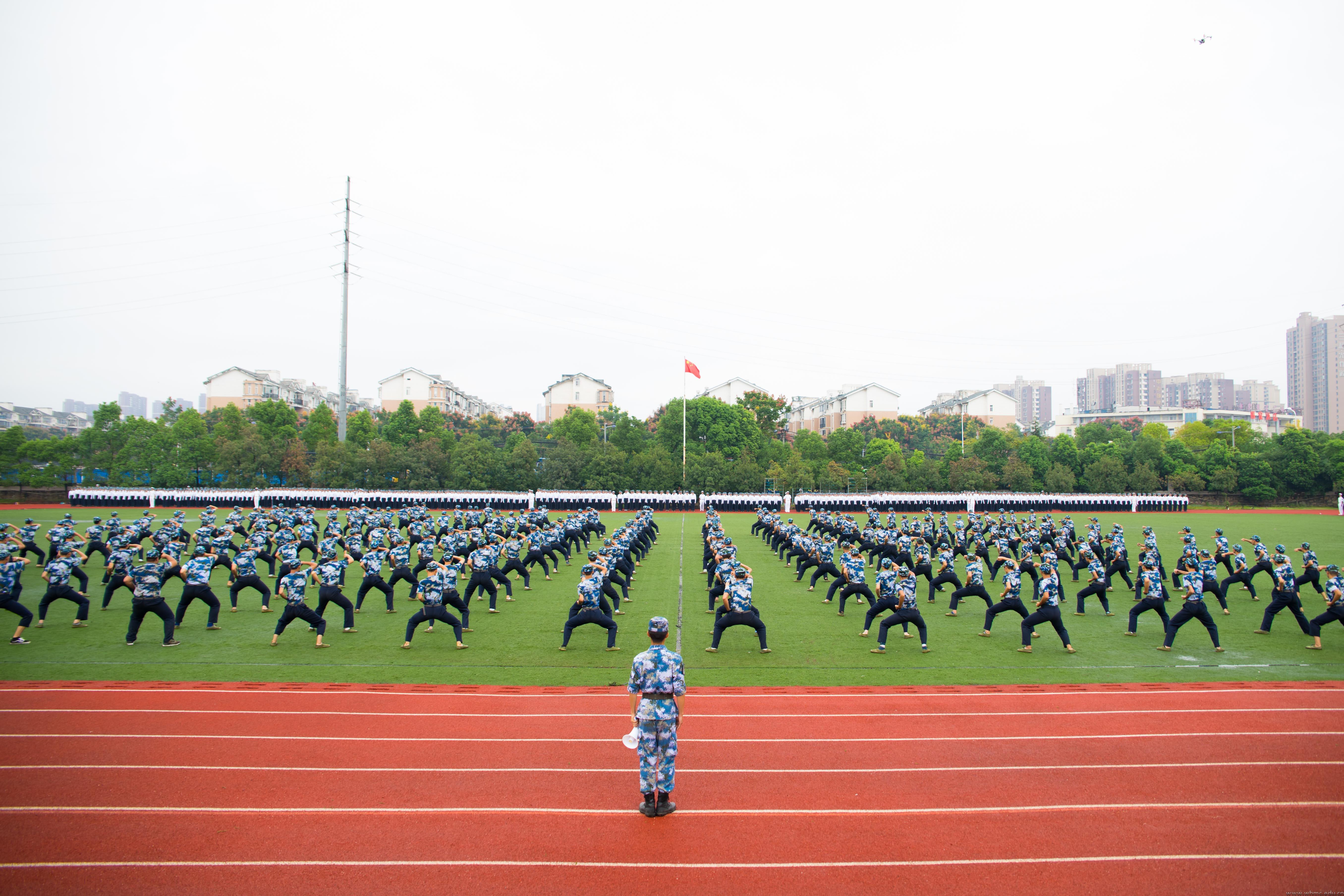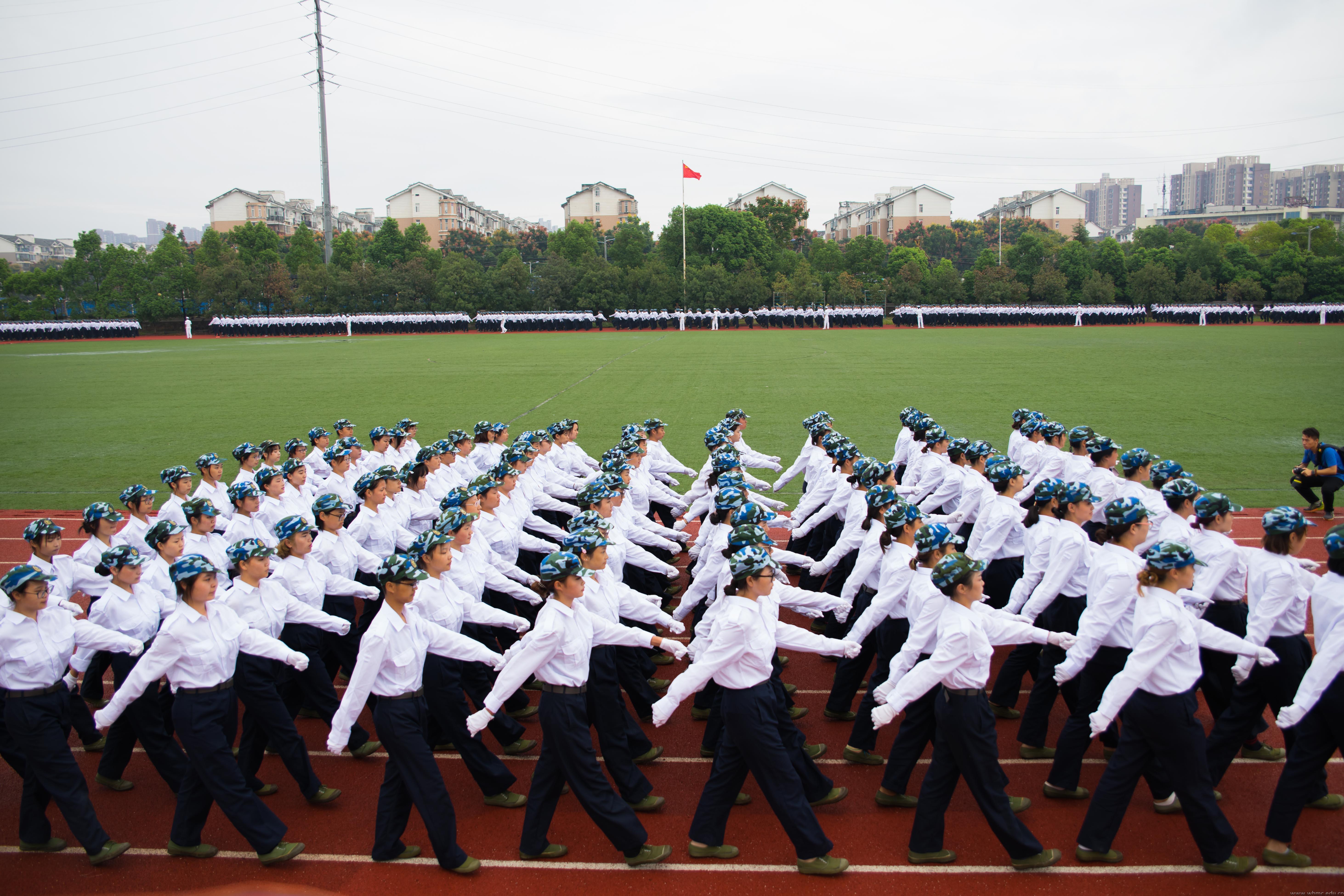 大会在奏国歌之后正式开始。军体拳方阵首先接受师生们的检阅,连贯的动作和气势磅礴的“杀”声受到了在场观演人员的热烈掌声。随后由新闻传播学院学生组成的一营一连方阵拉开了分列式检阅的大幕,整齐的步伐和响亮的口号彰显着他们青春的活力,也为他们的大学第一门必修课交上满意的答卷。