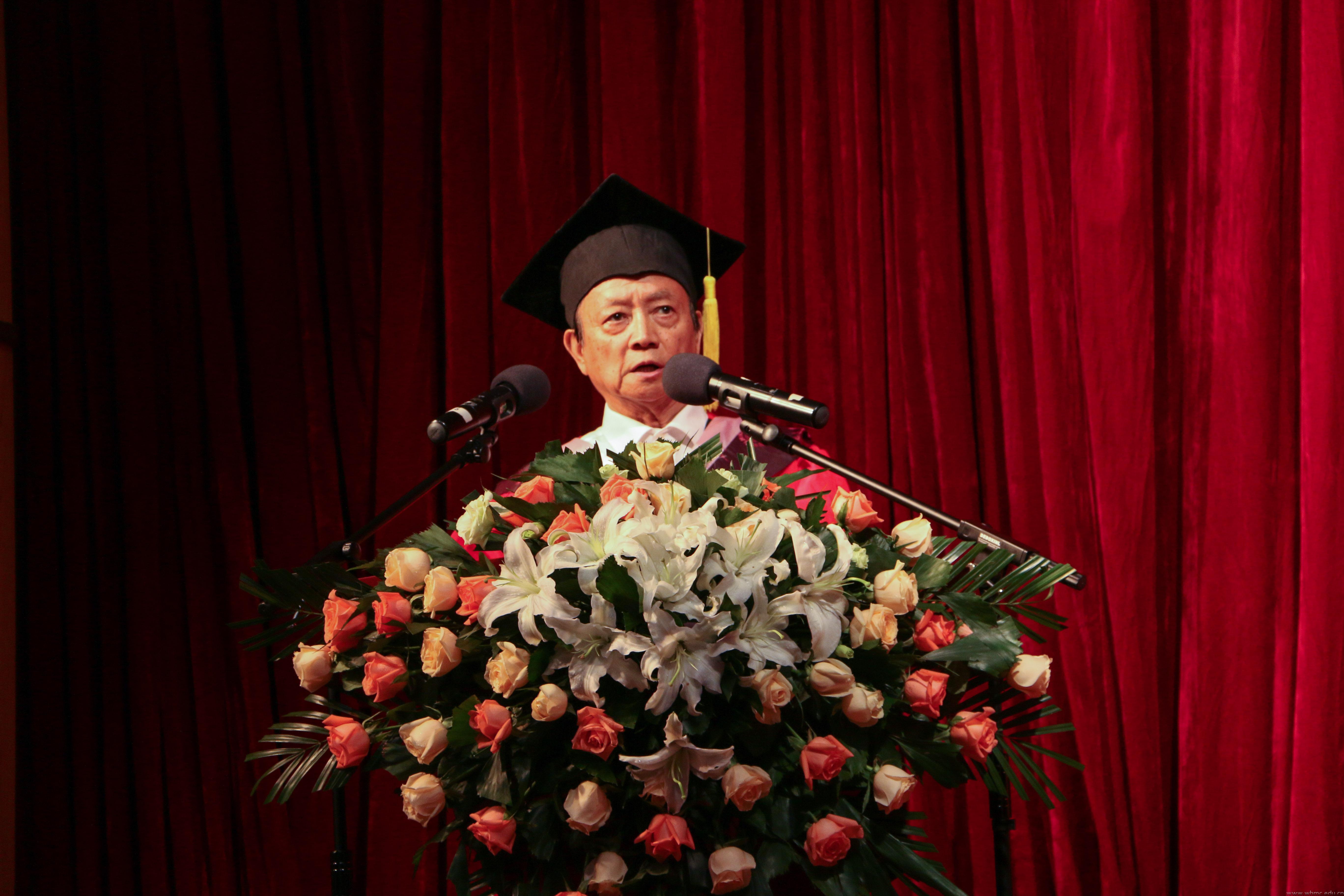 奏唱国歌后,校长沈振煜代表校党委、校行政和全体师生员工向2017届毕业生表示热烈的祝贺。校长沈振煜表示,本届毕业生不仅绝大多数顺利完成学业并获得学士学位,而且在国家级与省市级学科竞赛、大学生科研成果评选及各类专业创作、设计、表演竞赛中获得90余项国家级、省部级奖项。另外,在临行之际,沈校长以一名老教师和老教育工作者的身份,嘱咐并寄语毕业生:坚守理想,明确目标,践行梦想;终身学习,吐故纳新,实践创新;完善品格,追求高尚,学做真人;常怀感恩,密切联系,共谋发展。