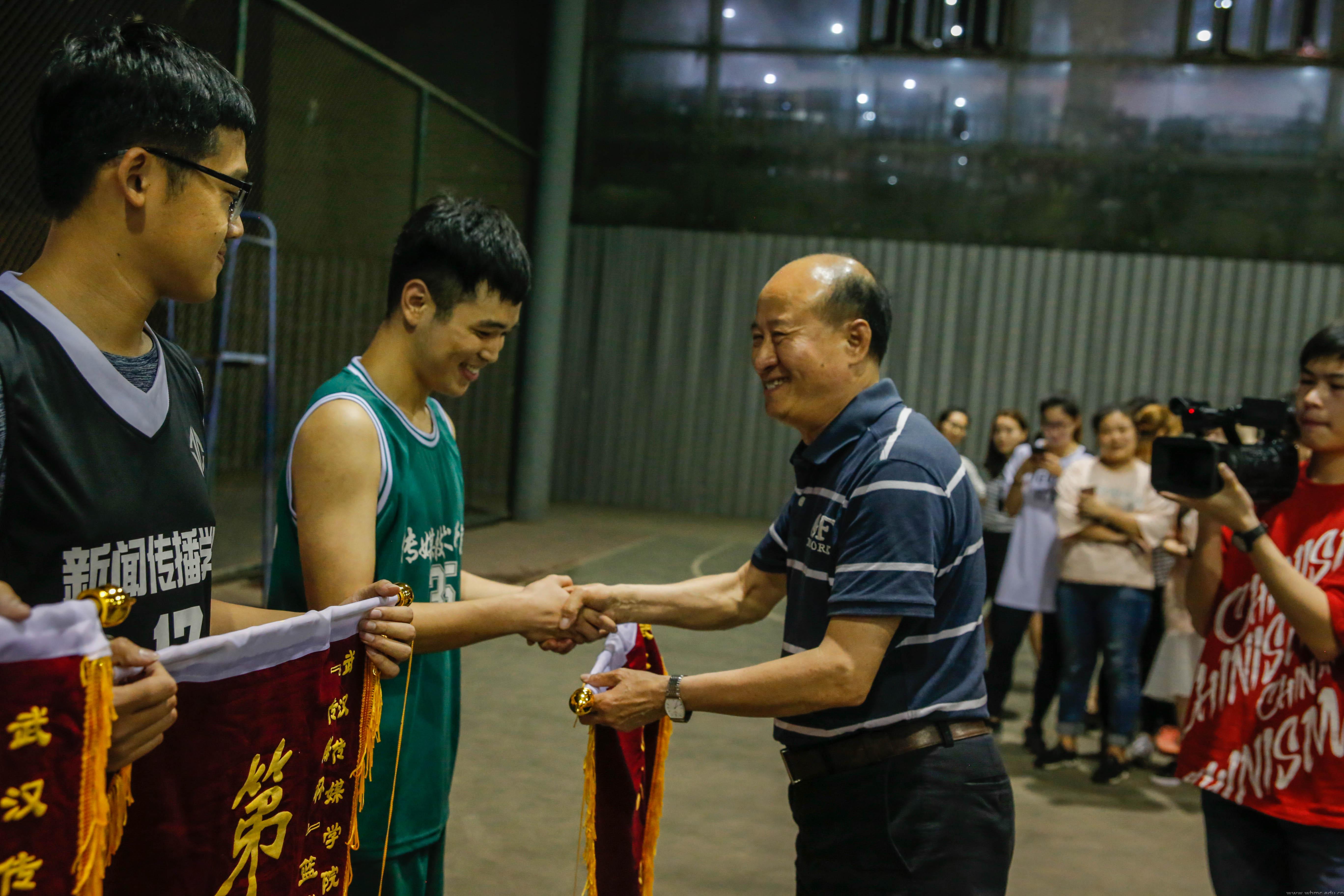 武传新闻网讯(文/见习记者曹浩 图/摄影见习记者 李佳楼 蔡临风)5月10日下午6时,第十四届“传媒杯”篮球赛三甲争夺战和闭幕式在风雨篮球场展开。经过激烈的争夺,最终电影与电视学院男篮战胜播音主持艺术学院夺得了男子组冠军。此前新闻传播学院女篮险胜电影与电视学院夺得女子组冠军。副校长陈智愚出席闭幕式并为获奖学院颁奖。闭幕式由人文与艺术学院院长助理、体育教研室主任谢桂西主持。