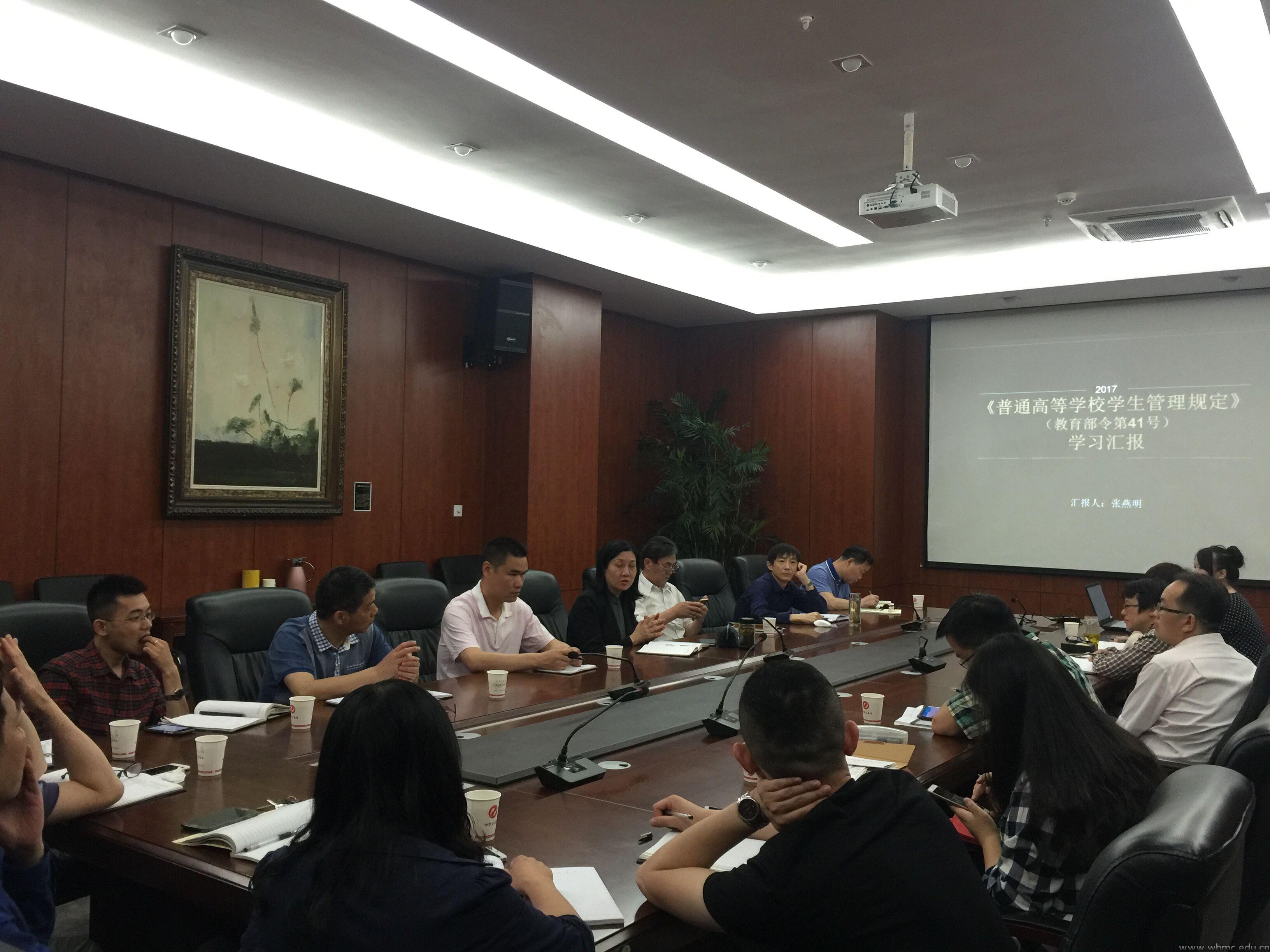 武传新闻网讯(文/通讯员 余佳伲)5月16日,乐竞平台组织召开贯彻落实教育部令第41号《普通高等学校学生管理规定》(以下简称新《规定》)的专题会议,常务副校长宗微出席会议并发表讲话。学校办公室、学生工作处、宣传部、人事处、教务处、资产处、后勤处及等职能部门负责人以及各学院党委书记参加了会议。