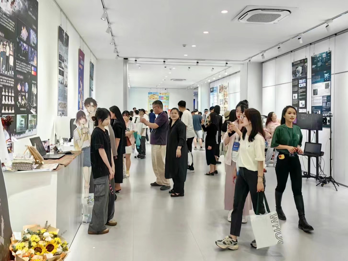在参访环节中,在我校志愿者团队的带领下,在场嘉宾们参观了“和合共生”毕业设计作品展,实地查看了学校各类实验实训基地。大家通过观看作品、聆听讲解,详细地了解了学生作品的创作思路和过程,也了解了我校学子如何在校内完成媒体实践等内容。