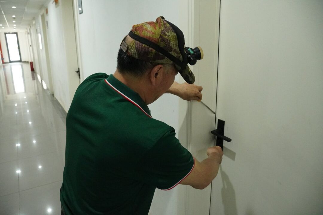 和已经在武传工作16年的徐才清相比,维修队队员舒金元来到学校工作刚满一年。即便时间不长,聊起在维修一线的工作,舒金元很自然地打开了话匣子。他介绍说,在学校他主要干木工的活儿,例如修理门窗、窗帘、锁这一类,其中修得最多的就是门锁。“男寝的问题比较多,因为男生相对女生来说,关门的时候力量太重了,冲击力太大就把锁给带坏了。在开门过程中,要用专用工具或者自己的一些技巧,才能把这个锁打开。”