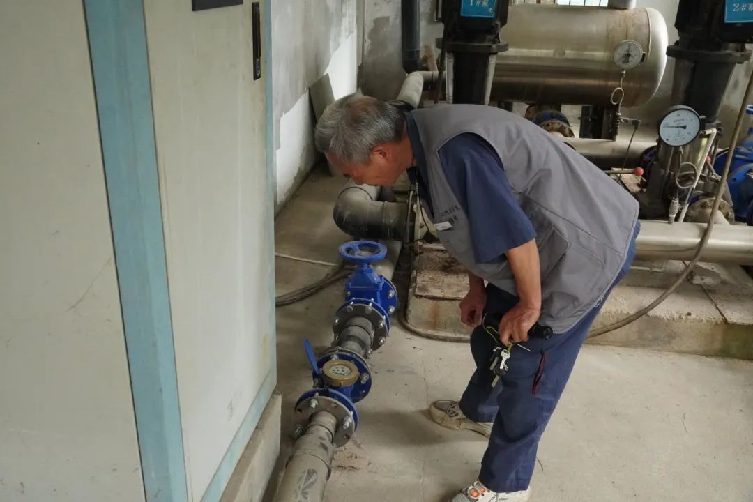 每天早上8:20,维修队队长徐才清都会和队员们开例会,布置一天的工作安排。巡查电房泵房、监控水表、派发维修任务,一天的活儿安排得满满当当。例会结束后,徐才清也没闲着,每项工作都带着队员一起干。