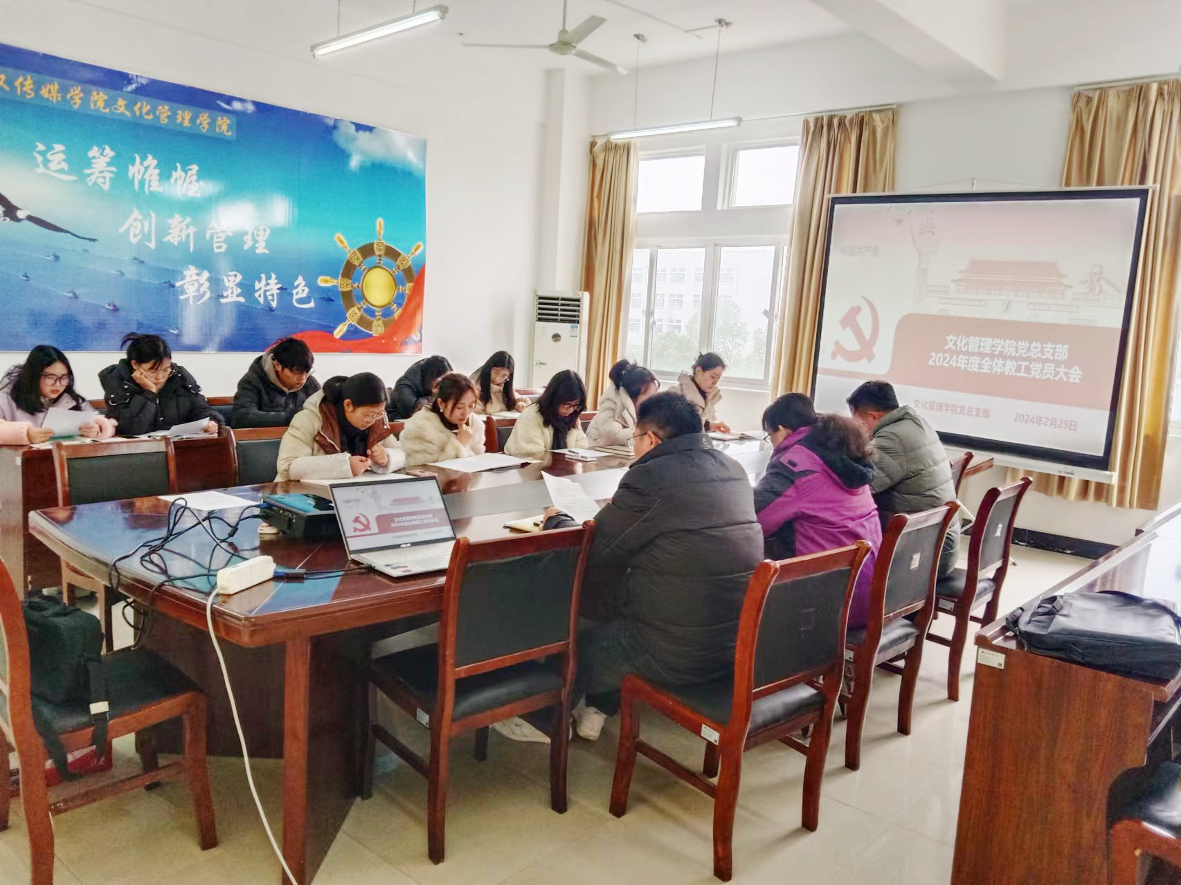 武传新闻网讯(通讯员 郝佳绮)爆竹声中一岁除,春风送暖入屠苏。新年伊始,我校文化管理学院党总支部于2月29日在五号教学楼5309会议室召开了全体教职工党员大会。会议由党总支部纪检委员、教工党支部书记蒋冬青同志主持。