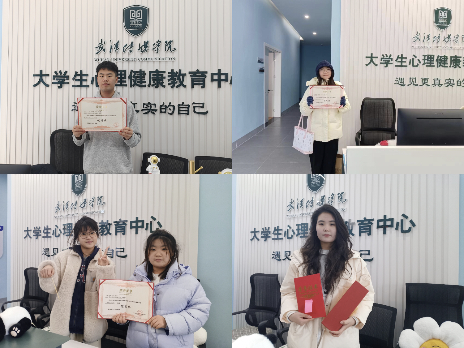 大赛结果公布后,获奖学生前往心理中心领取证书、奖杯并合影留念。
