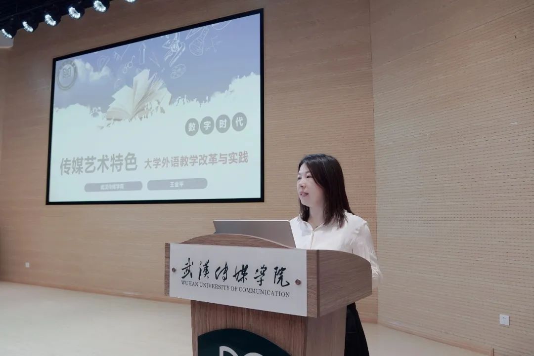 同时,王金平还介绍了我校基于校情进行的大学外语课程体系建设,包括根据学生英语基础设计分层教学体系,在分班上分为艺术基础班、普本基础班、E-class班三类教学班级;在教材的选取使用上针对性地编撰出版了与播音、表演专业相关的高等教育英语教材;在课程评价体系上,形成性评价与考核性评价相结合。其中,形成性评价包括平时上课的互动、作业、讨论等,考核性评价包括了听、说、读、写各部分内容。