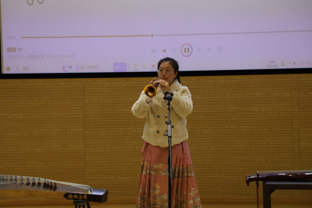 “唢呐一出、燃爆全场”“唢呐一响、黄金万两”这是人们对于唢呐的印象,而它也确实是这样的存在。在演奏者张颖老师的吹奏下,现场观众才真正体验到唢呐的魅力。其演奏的《百鸟朝凤》更是以热闹欢快的曲调,描摹了百鸟和鸣之声,歌颂了自然之美,充分发挥唢呐善模仿的特长,用独特的气质与音色为此次音乐会的演奏增添一抹亮色。
