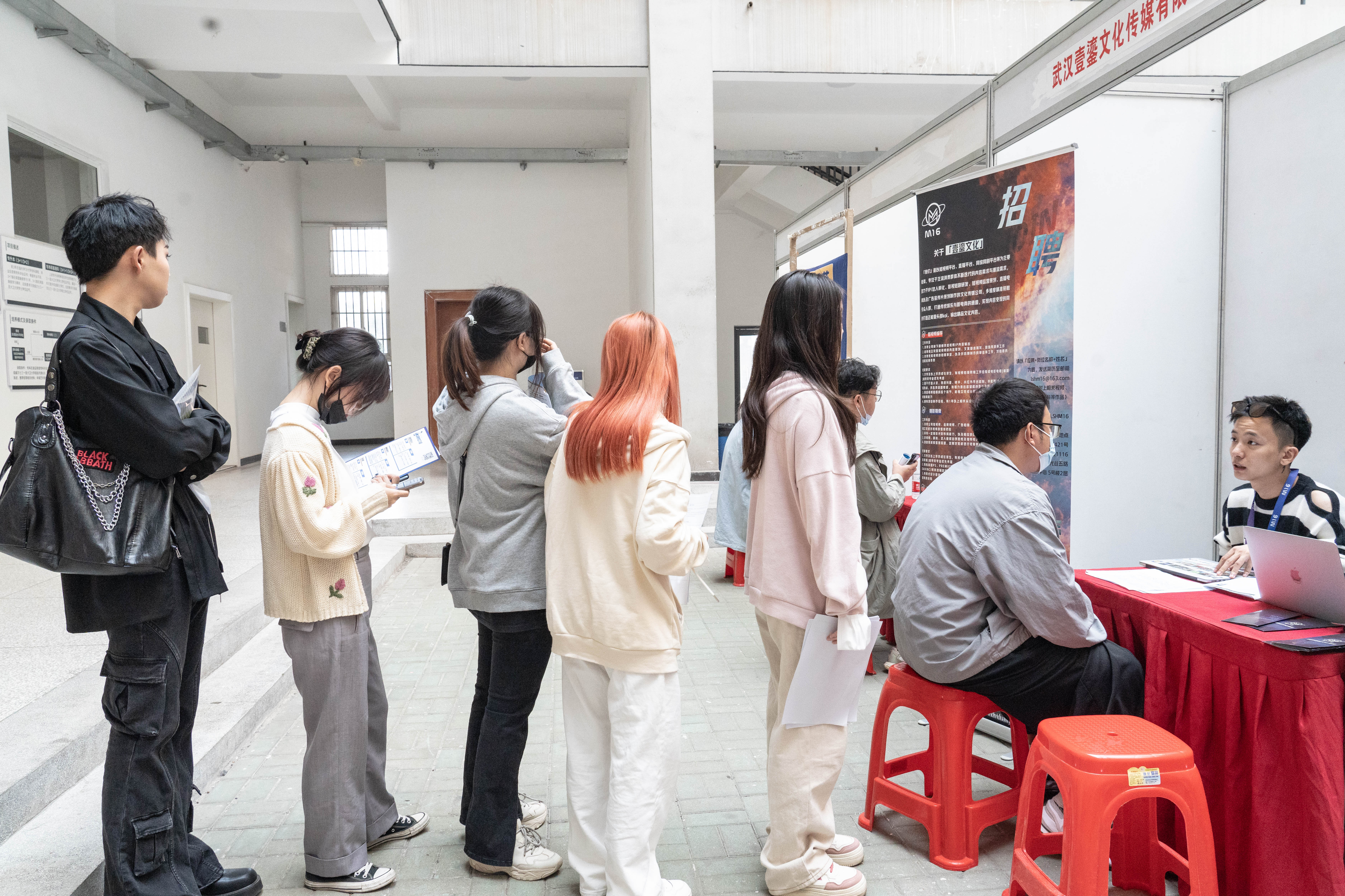 在招聘会现场,大多数应届生目标明确,着装正式,带着自己的简历直奔想要应聘的企业或岗位。最受应届生青睐和欢迎的大多是与应届毕业生专业对口且薪资待遇尚佳的用人单位,例如博纳影业集团有限公司、武汉开心麻花文化传媒有限公司等。同样,在场不少用人单位的负责人表示,会优先考虑录用实践经验丰富、就业方向明确的求职学生。