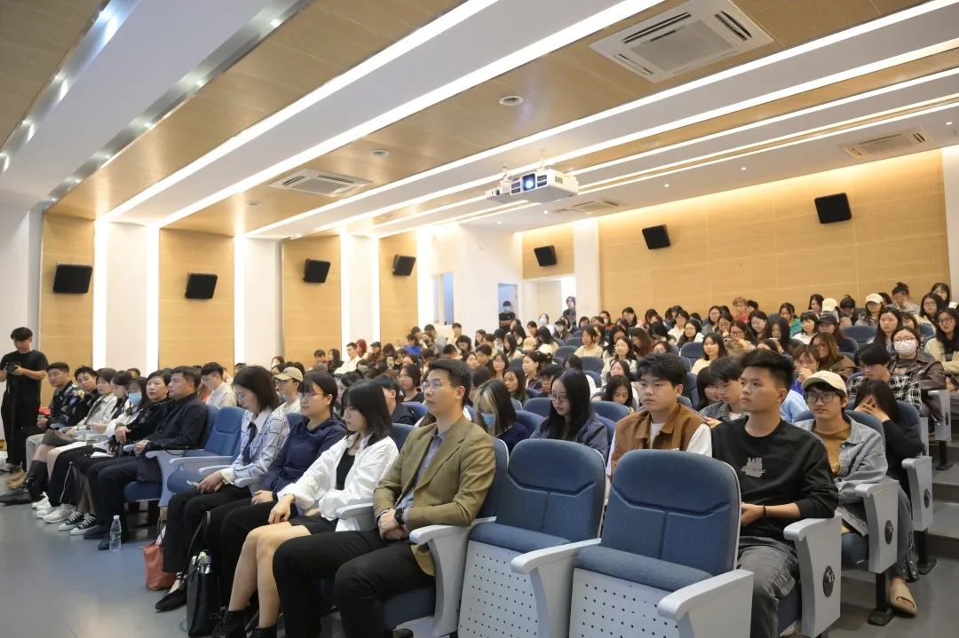紧接着,来自荆楚网(湖北日报网)的副总编辑查昭和湖北海外旅游集团的副书记方敏为同学们进行经历分享。查昭表示,在荆楚网实习的我校学生很可爱、很能干,尤其是动手能力超强,并多次在现场提到几个实习生的名字。同时,也是由于上届接收的6位实习生表现优异,所以这次荆楚网将实习生名额增加至11个。方敏则介绍了我校和湖北海外旅游集团共同建设实习基地的情况,并对校企未来深度合作充满期待。