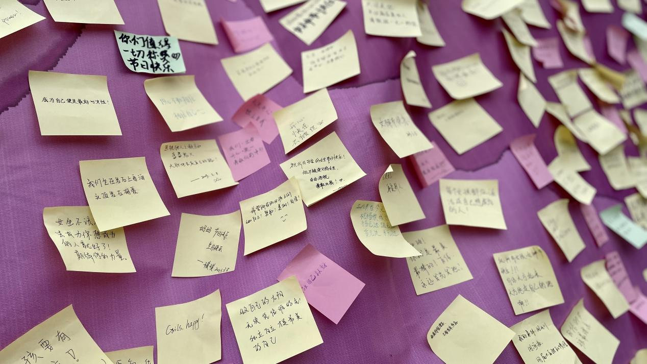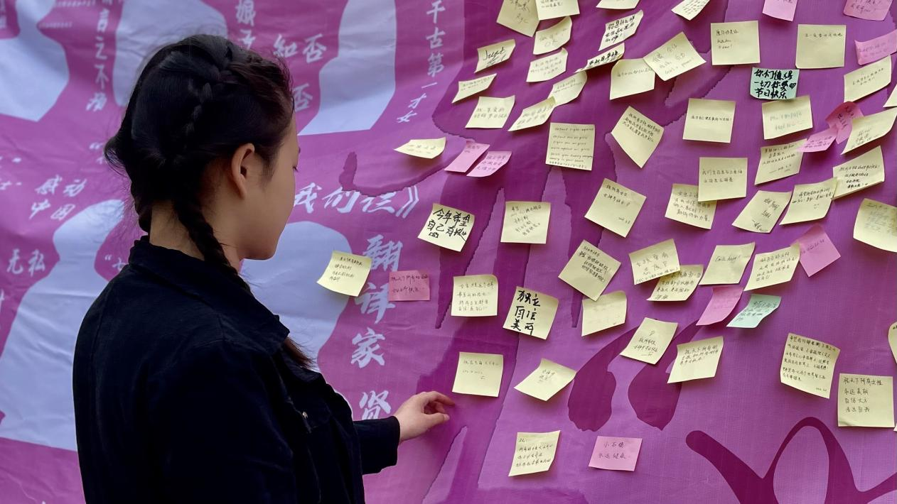 “她”力量主题活动现场放置了国内外优秀女性代表的个人事迹展板,参与者根据展板事迹猜出对应的姓名并用便签写下鼓励女性的话语后可以获得节日祝福与精美礼品。据悉,活动受到了师生们的一致好评,参与者们纷纷表示在新时代的各行各业中,都有像她们一样的劳动妇女在工作岗位上兢兢业业、屡创佳绩,用劳动创造幸福,以实干成就梦想。