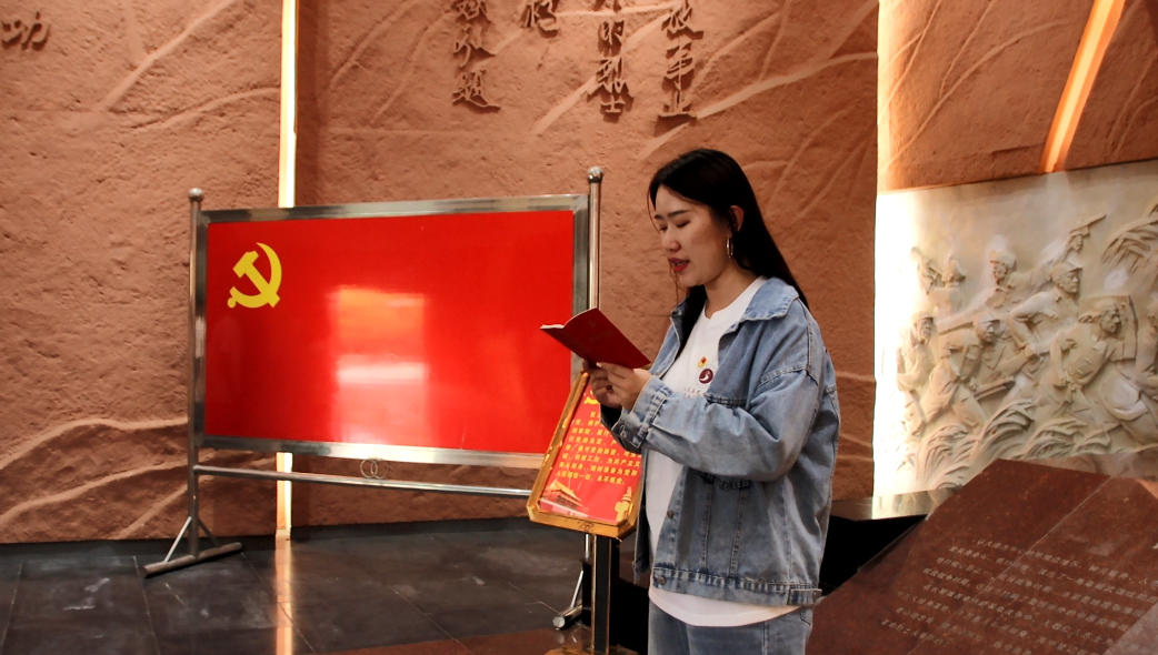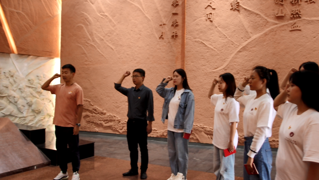 参观结束后,由刘晓萱带领第37期预备党员集体诵读《中国共产党章程》总纲重温党的性质。葛清源带领第37期的8名预备党员重温入党誓词,追忆入党初心。