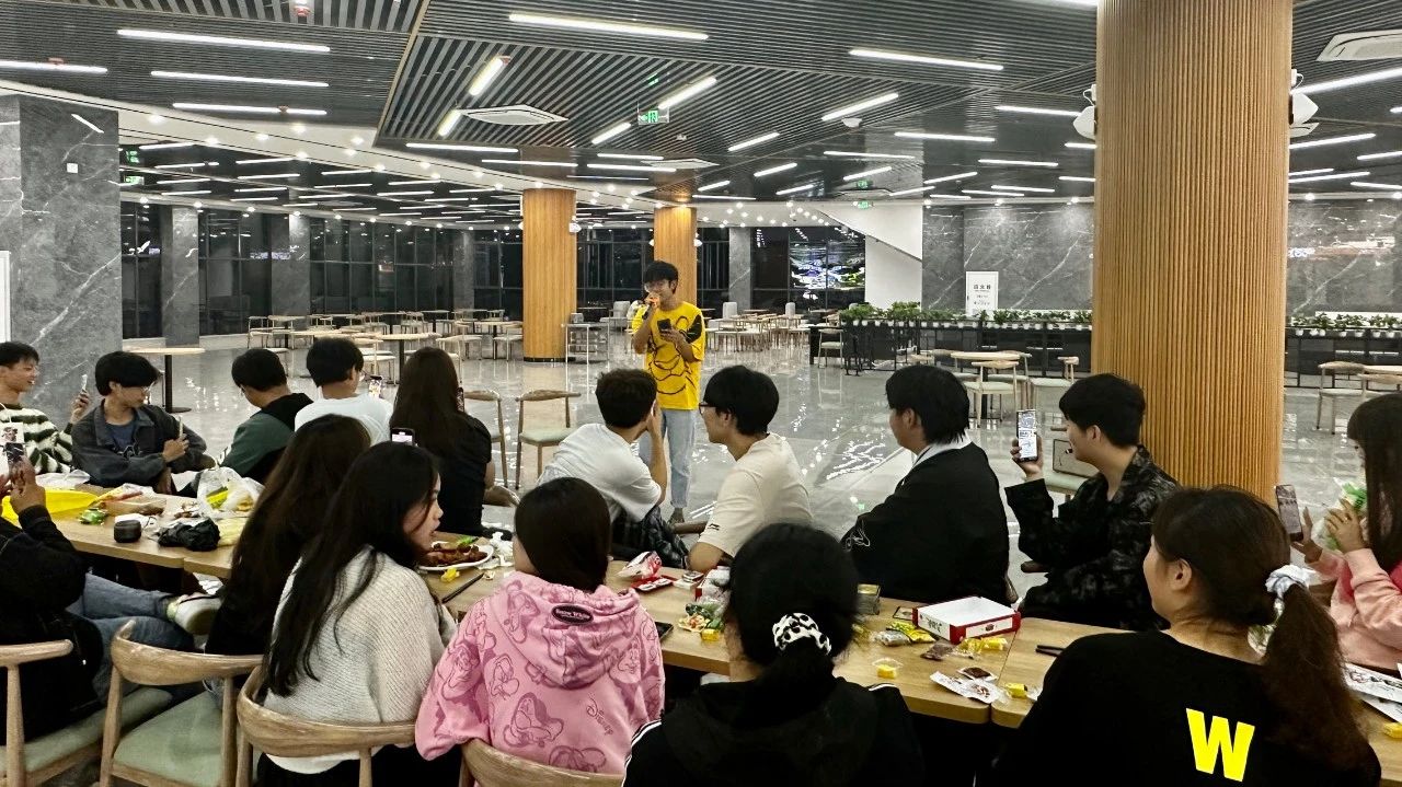 在清晨,老师们带领留校的学生一同前往阳平镇柳林村,去感受“林涧小隐、美丽乡村”的桃源风景。傍晚时分,老师们还纷纷为学生送去月饼,并举办了文艺活动和联欢会。