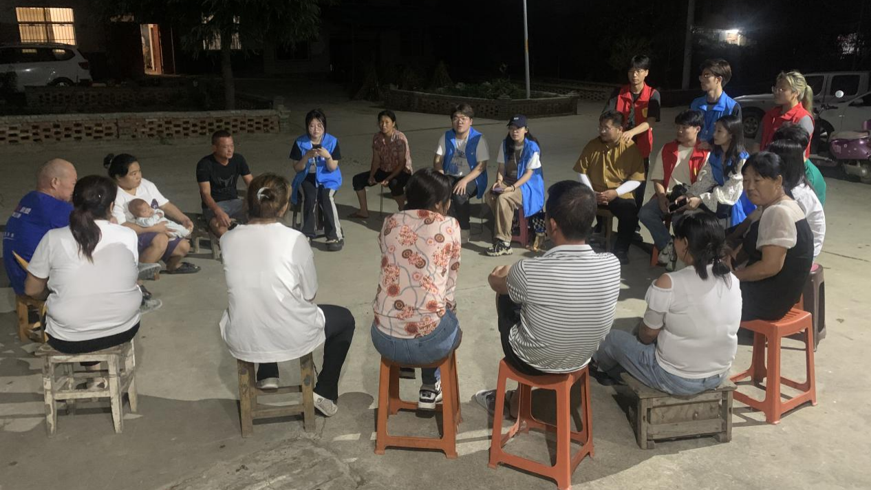 团队在湖北省襄阳市古驿镇期间,开展实践式的“青春党课”、行走式的“田野党课”、跨越式的“院坝党课”、围炉夜话等多形式的理论宣讲活动。