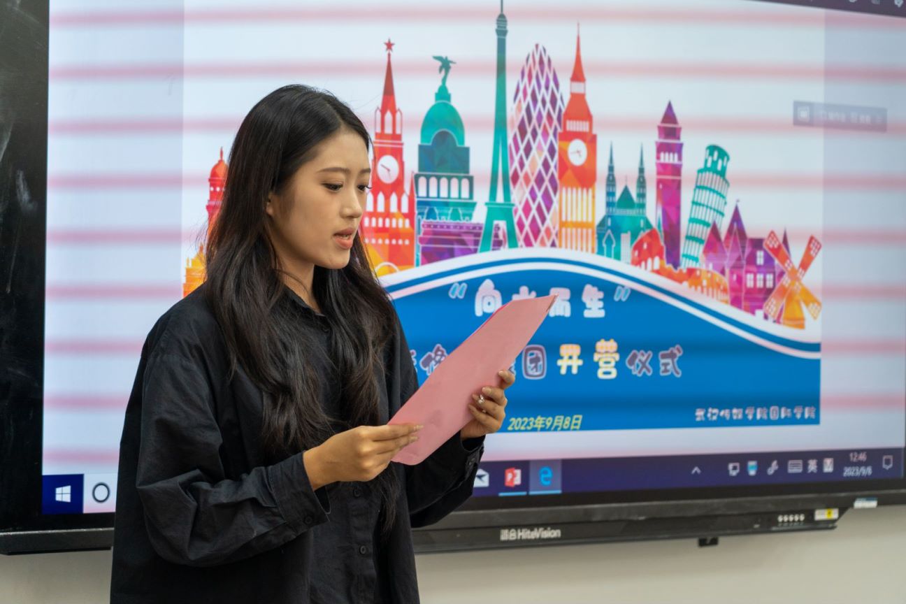 随后,教务处处长姜虹向领队教师吴旻昱颁发聘书。学生代表陈依阳在发言时讲到了对自己的期望,她希望通过此次研学可以更好地去拓宽自己的国际视野,学习更多新思想,传递中国文化,并记录下此次研学的故事。
