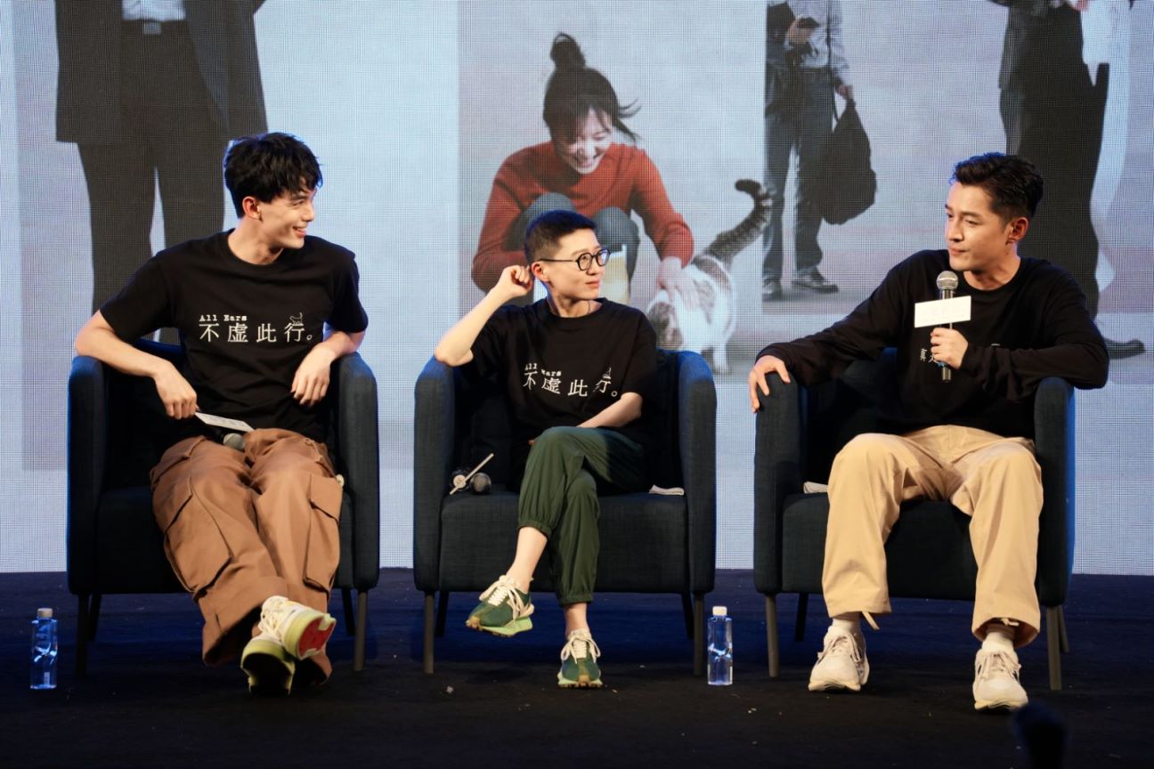 观影过后,电影《不虚此行》的三位主创人员一同登台,与现场观众进行映后见面,并正式开始了此次交流会的分享环节。此前,电影导演刘伽茵已凭借这部电影于今年6月获得上海国际电影节最佳导演奖的奖项。在交流过程中,刘伽茵表示,影片中闻善和小尹的互相陪伴与交流,其实是她本人处世态度和性格上的一种投射,她也将自己在这十年里受到过的理解、帮助和温暖融进了电影的故事当中。