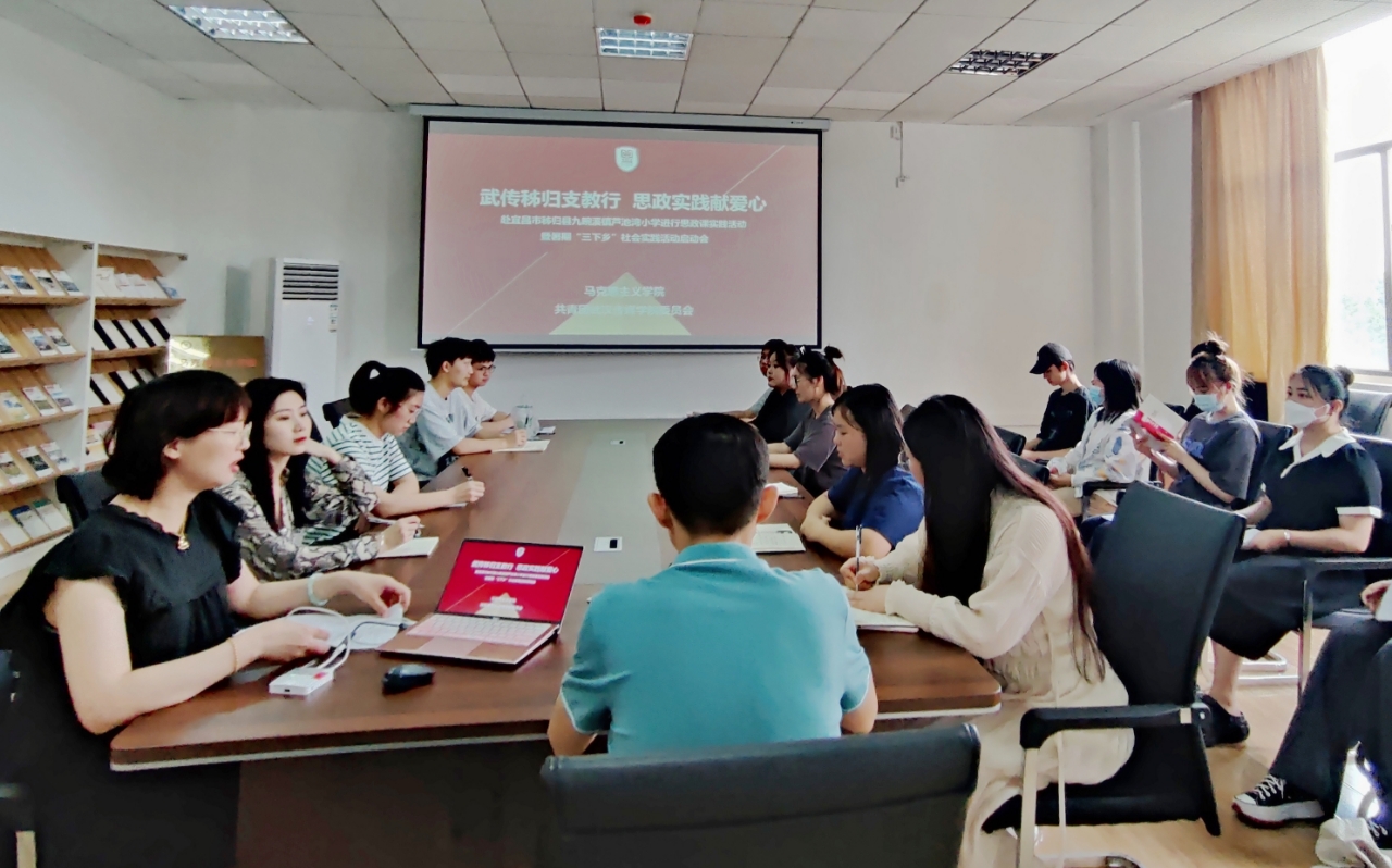 (武传新闻网讯 通讯员 张红)为深入学习宣传党的二十大精神,贯彻落实习近平总书记关于青年工作的重要思想,向广大青年做深做实习近平新时代中国特色社会主义思想宣传教育。2023年6月29日12点,乐竞平台赴宜昌市秭归县九畹溪镇芦池湾小学进行思政课实践活动启动会在8201会议室召开。马克思主义学院院长张燕明,校团委副书记蒋璐璐,马克思主义学院及学工处的代表老师及此次支教活动的全体同学参加了本次会议。本次会议由马克思主义学院德法教研室主任徐小莉主持。