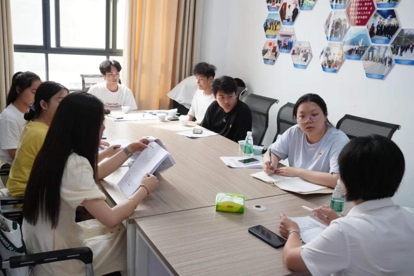 6月29日下午,实践组成员们来到茅店村村委会和并与书记谭新萍进行前期拍摄的沟通与交流,落实拍摄安排、人员调动、堪景踩点等方面工作。交流后,谭书记带领实践组成员熟悉村内环境,介绍了近年来茅店村脱贫攻坚、乡村振兴的成果,以便实践组更好地开展实践活动,提高拍摄效率。