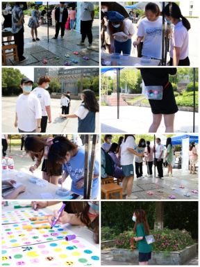 活动共设置了七个小游戏:“创意涂鸦”、“夹弹球”、“九点连线”、“千钧一发”、“套圈圈”、“摆脱烦恼”、“齐头并进”,每个游戏集活动性、趣味性、体验性于一体。活动现场,同学们积极参加各类奇趣横生的游戏,凭借自己的智慧与才能,努力完成游戏任务,并获得相应的小奖品。