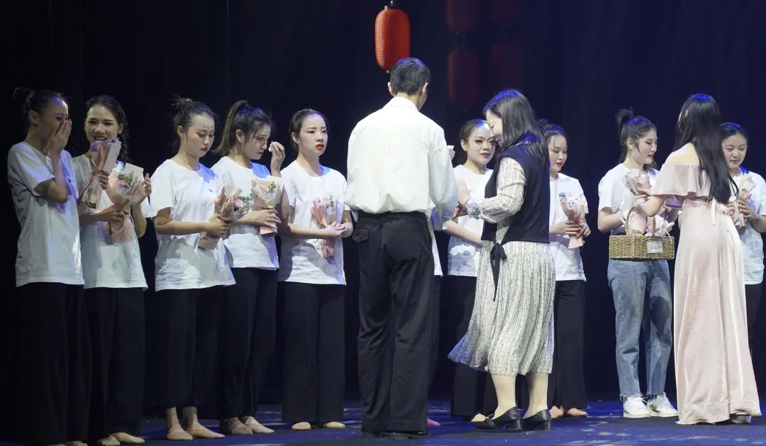 演出结束时,校党委副书记蒋萦致辞,校长助理赵秀丽为学子们送上花篮。