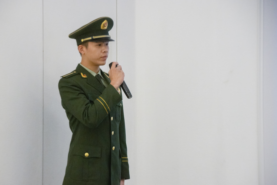 电影电视学院2019级退役复学学生周坤进行发言。周坤同学从基本条件、报名参军基本流程等七个方面对征兵政策进行解读,并号召同学们积极响应国家召唤,为国防事业添砖加瓦。周坤同学发言完毕后,由2022年春季入伍学生代表王昱杰同学发表讲话。王昱杰同学凭借家庭的熏陶和自身坚定入伍信念,将于2022年春季入伍,在发言中他提到他崇拜军人气质,向往军人奉献,喜欢军人精神。