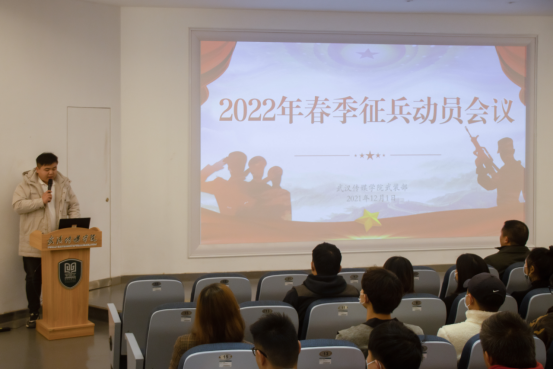 为增强武传学子的国防观念,激发爱军拥军参军的热情,进一步帮助大学生了解、掌握应征入伍相关政策和流程,推动2022年春季征兵工作高质量的完成,乐竞平台于12月1日在多功能报告厅举行2022年春季征兵动员会。汉南区人武部部长、征兵办公室主任陈登陇上校,汉南区人武部副部长、征兵办公室副主任曹飞中校、汉南区人武部军事科征兵主管参谋戴恒同志、学工处处长助理瞿宗巍参加大会。