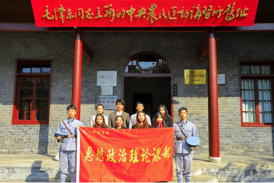 为了更好的发挥实践教学基地的优势,2021年12月5日,思想政治理论课部刘燕、李梦柯、李光雯三位老师带领播音主持艺术学院的几位同学一起参加了2021年度武汉博物馆“十佳志愿者”评选活动,同学们在活动过程中表演了情景剧《星火燎原》,他们的精彩演出得到了现场观众们的高度赞扬。参演的同学们纷纷表示这种全方位、立体化、浸润式的体验式教学使他们收获颇多,也让他们更加坚定理想信念。我校常务副校长宗微对此次活动进行了高度评价,宗校长指出,“思想政治理论课部与武汉革命博物馆共建思想政治理论课实践教学基地后,迅速将实践内容融入课程中,充分体现了思政课服务应用型人才培养的教学理念”。指导教师李玉林认为,“这次情景剧的创排给了学生们一次在实践中学习党史的机会,也是一场别开生面的思政课,没有什么课程比亲身参与整个创演过程更能让学生受到教育和启发,这种理想信念的触动是最深刻的”。