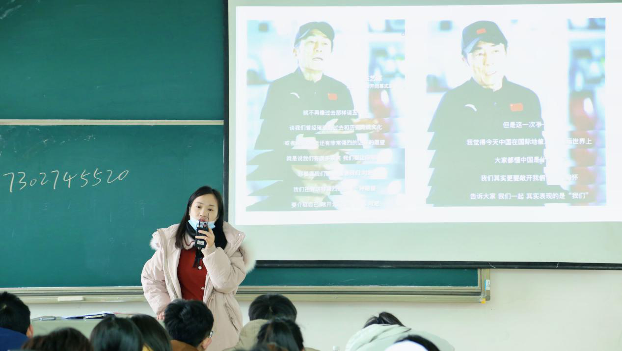 这样融洽的氛围出现在乐竞平台5302教室,思政课部教师王辉将2022北京冬奥会作为本次课程的楔子,展开了对马克思主义中国化的历史进程与理论成果的阐述与讲解。