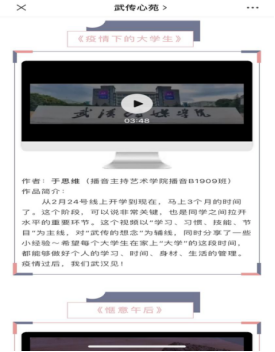 为帮助学生在新冠病毒肺炎期间调适心理状态,学会感恩生活、感悟成长、感激生命,心理中心开展了”与自己对话”微视频创作大赛、“与生命对话”教育载体创作大赛。