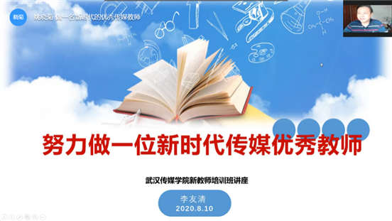 开班典礼后,特邀校外专家李友清教授为新教职工做了《努力做一位新时代传媒优秀老师》的主题报告,李友清教授站在时代发展的高度,结合国家区域经济文化发展形势和高等教育质量革命的态势,高屋建瓴地从宏观理念形势到中观思路举措到微观职责方法,层层推进、满怀激情地从“为什么要当教师”、“新时代高校教师的使命和担当”、“传媒大学教师的任务和责任”三个方面讲述了教师的内涵、使命及担当,并结合传媒业发展态势,提出了传媒大学教师肩负的五大任务与责任,号召新教师们要努力提高专业素养,做“四有”好老师,践行“四为服务”。讲座最后,李教授殷切希望大家把个人的理想追求融入国家和民族的事业中,勇做走在时代前列的奋进者、开拓者!希望大家珍惜韶华,不负众望,脚踏实地,把远大抱负落实到乐竞平台的建设发展中,努力做一位新时代传媒优秀教师,为把乐竞平台建设成全国特色鲜明,新文科示范院校贡献力量!
