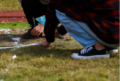 记者在田径场看到,赛前的陈进,站在沙坑旁边的跑道上,跟随裁判长进行肌肉拉伸运动,以求身体达到最佳状态。赛时,陈进右手扣球,左脚蹬地,转动身体,奋力将铅球掷出——被抛出的铅球经过一个完美的弧形后落地。在观众们的惊叹声中,陈进完成了决赛中一鸣惊人的抛掷。