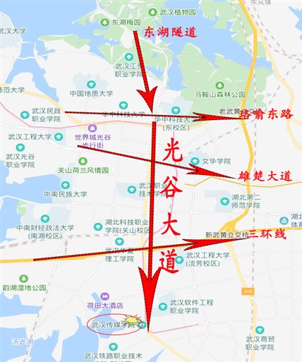 市内自驾车:经光谷大道穿过三环往江夏方向前行2公里即到。
