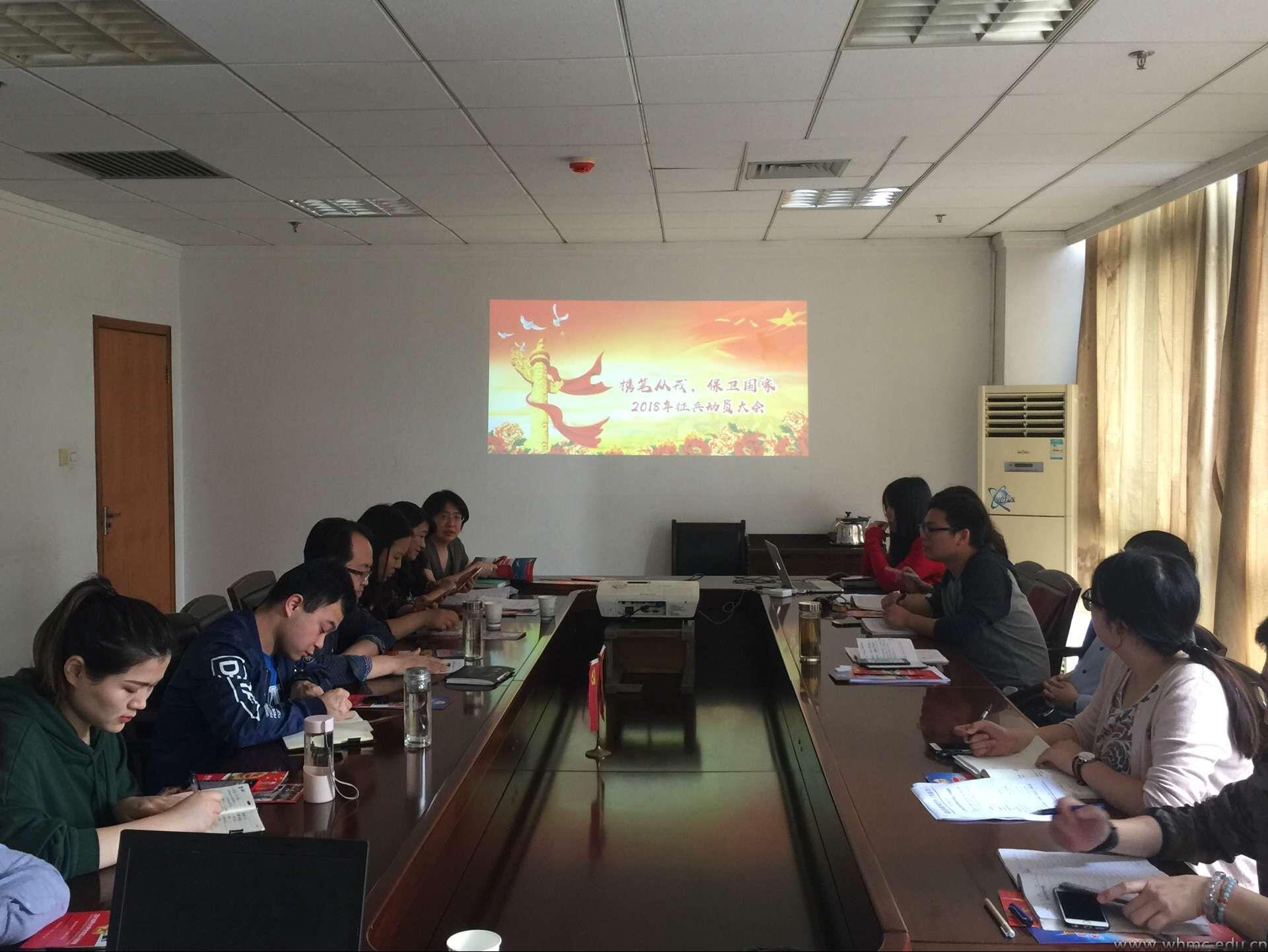 武传新闻网讯 为保证国家有关大学生应征入伍各项政策的全面落实,协调征兵工作进度,根据“2018全国大学生征兵工作网络视频会议”的精神,做好我校大学生应征入伍工作,5月10日上午9时,我校在行政楼414会议室举行“2018年征兵工作动员会”。常务副校长宗微、学生工作处处长兼武装部部长张燕明、教务处副处长姜虹,以及各学院党总支书记、团委书记参加了此次会议。