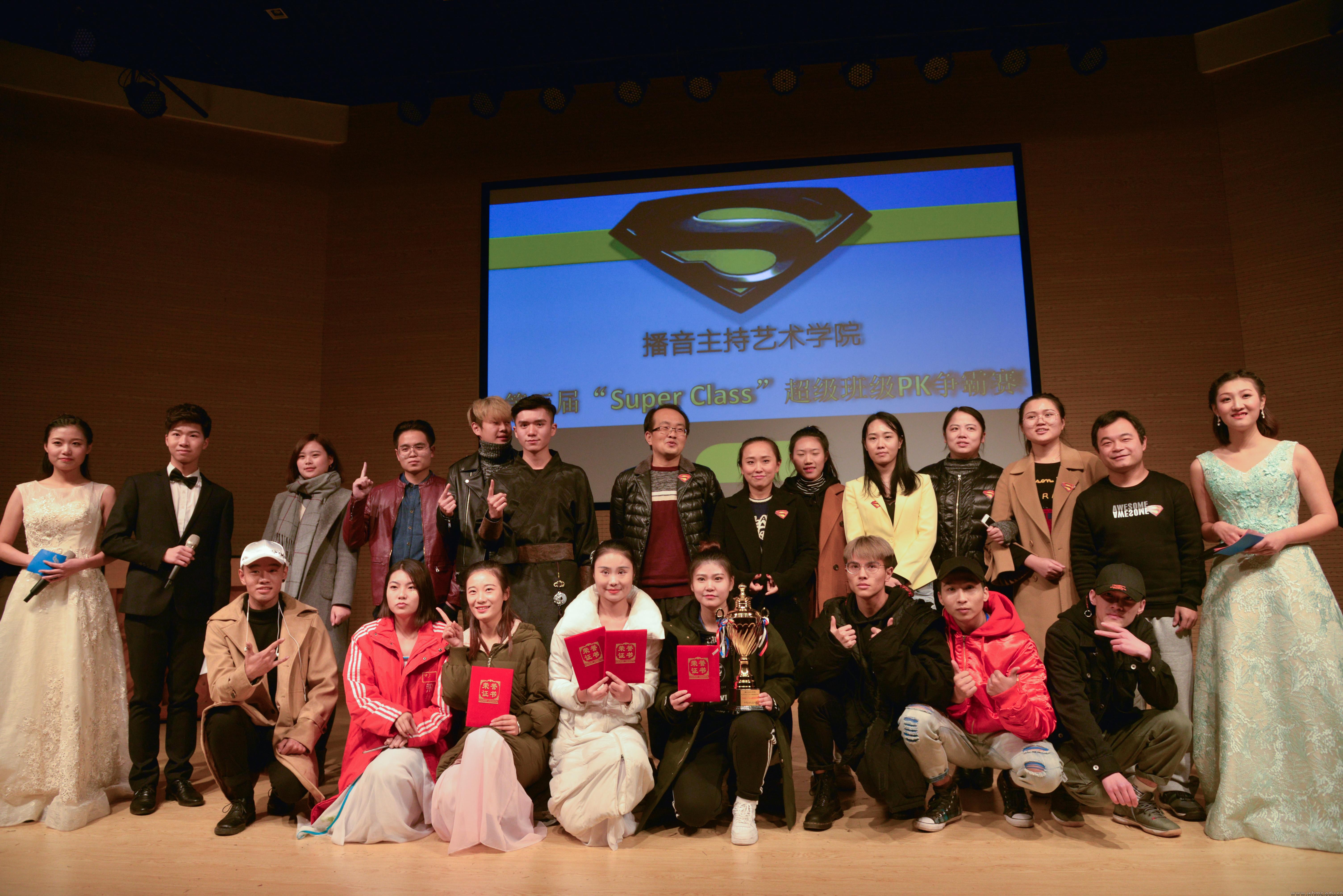 最后,播音与主持艺术专业B1701班夺得了本届“Super Class”超级班级PK争霸赛“超级班级奖”,B1703班获得“优秀组织奖”,B1706班获得“最佳人气奖”,B1703班获得"最佳创意奖",播音与主持专业Z1701班获得"最佳默契奖"。