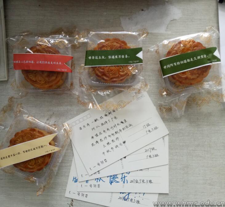 武传新闻网讯(文/记者 周学语 见习记者 许梦娇)“谢谢学姐送的月饼,还有‘情书’。”9月30日,2017级广播电视学专业3班班群被收到月饼的消息刷了屏。原来该班的学姐“班主任”鲁珏为每一名新生以及老师赠送了月饼和一封写着祝福的贺卡。