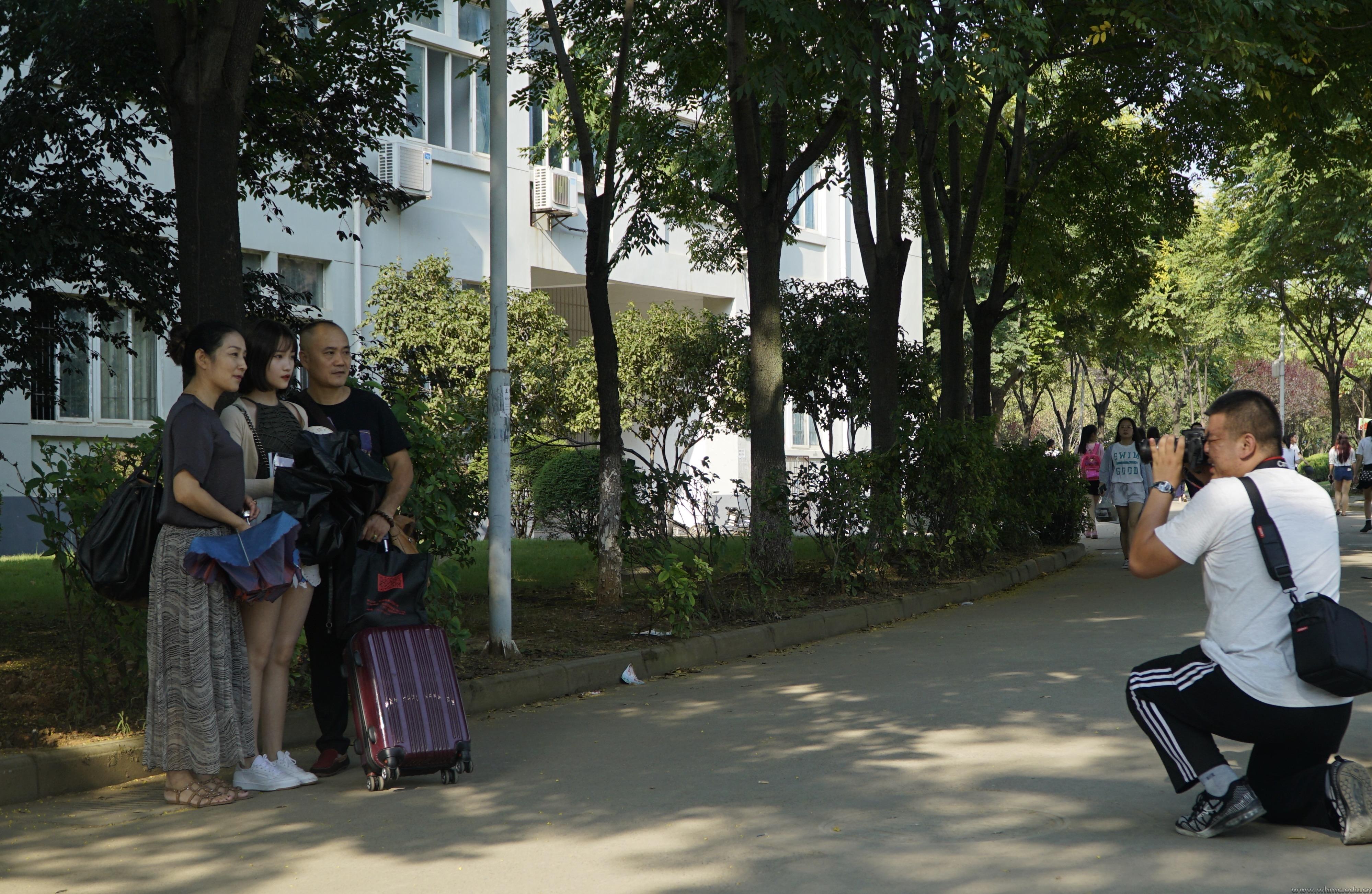 武传新闻网讯(文/记者 吴梦圆 王通)9月7、8日是我校新生报到的日子。2016级广播电视学专业夏日的相机里多了100多张陌生人的照片。这两天没课的时候,他一直在学校里免费帮新生和家长拍合照。