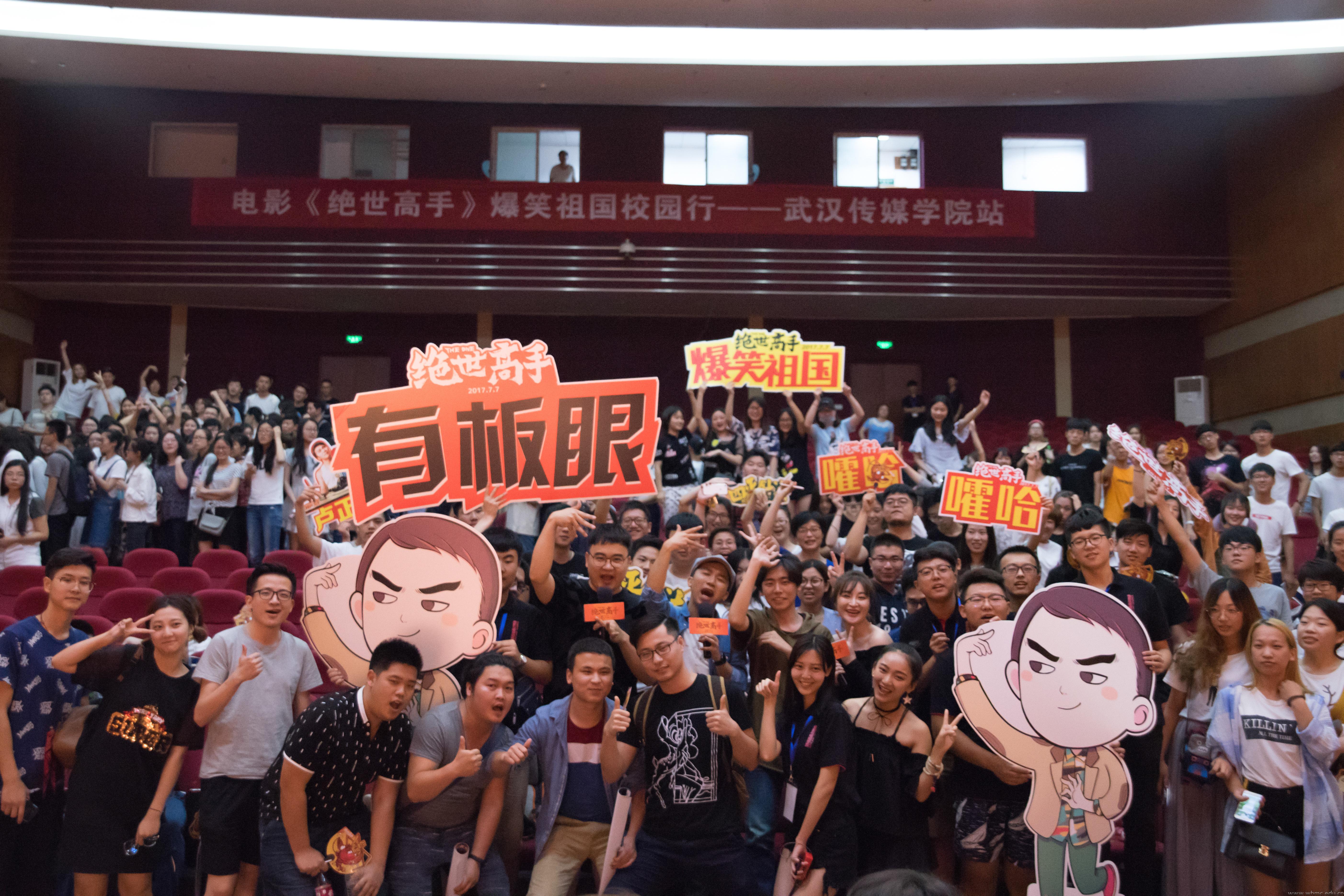 武传新闻网讯(文/记者 周冰倩 见习记者 王通 图/摄影记者 李洁莉)6月14日下午,喜剧电影《绝世高手》校园点映暨主创见面会于我校凤凰演艺厅举行。导演卢正雨、演员孔连顺到现场与观众交流。两位主创作为喜剧演员,一到现场就“不走寻常路”,没有直接走到台上,而是从演播厅后门进入,在演播厅内飞奔,与现场观众握手互动。