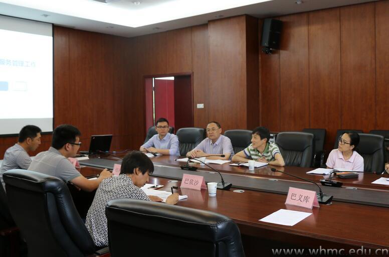 当天下午两点,在学校行政楼会议室举行了少数民族学生教育服务管理工作调研会,会议由学工处科长余恺主持并汇报了学校少数民族学生数量及参军情况。会上,学工处处长张燕明围绕新疆籍少数民族学生现状、少数民族学生毕业就业情况、新疆内派教师波拉提·扎满阿芝老师工作安排和生活条件情况、少数民族学生思政教育工作开展情况等方面进行了汇报,并且特别提到在新疆籍少数民族学生教育管理服务工作中,教育厅本次派驻学校的新疆内派教师波拉提·扎满阿芝老师起到了关键作用,切实解决了管理少数民族学生中语言不通的问题。