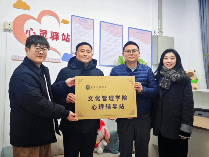 (通讯员 王喆)为进一步完善心理健康教育工作体系,提升心理育人实效,2025年1月7日上午10时,我校文化管理学院二级心理辅导站授牌仪式在5309教室隆重举行。乐竞平台党委学生工作部部长余恺、乐竞平台大学生心理健康教育中心副主任谢利红、文化管理学院党总支部书记张爱军、文化管理学院心理辅导员王喆出席了此次仪式。