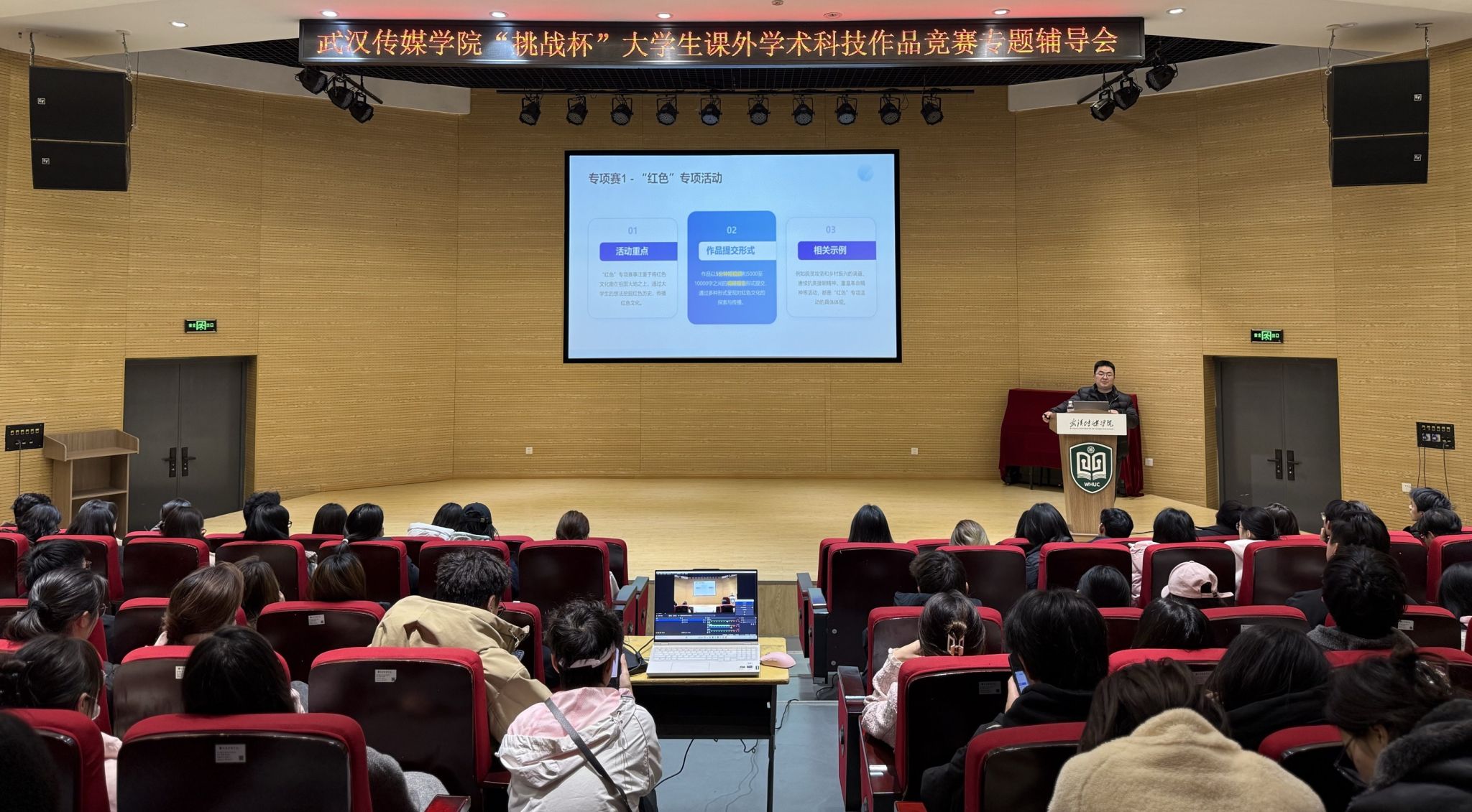 为深入学习贯彻党的二十大和二十届二中、三中全会精神,进一步培养我校学生的创新意识,营造积极健康向上的浓郁校园学术氛围。2月27日,我校在武汉校区圆形报告厅召开“挑战杯”大学生课外学术科技作品竞赛专题辅导会,创新创业学院院长蒋冬青教授为参赛学生解析备赛要点。大悟校区师生通过线上直播观看此次讲座。