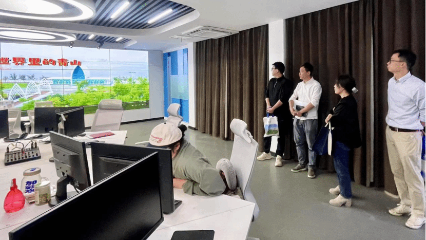 会后参观指挥大厅,了解青山融媒体中心运营模式、产品制作、编发流程。