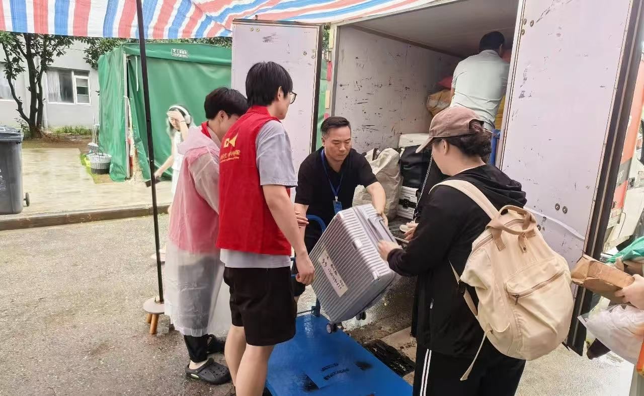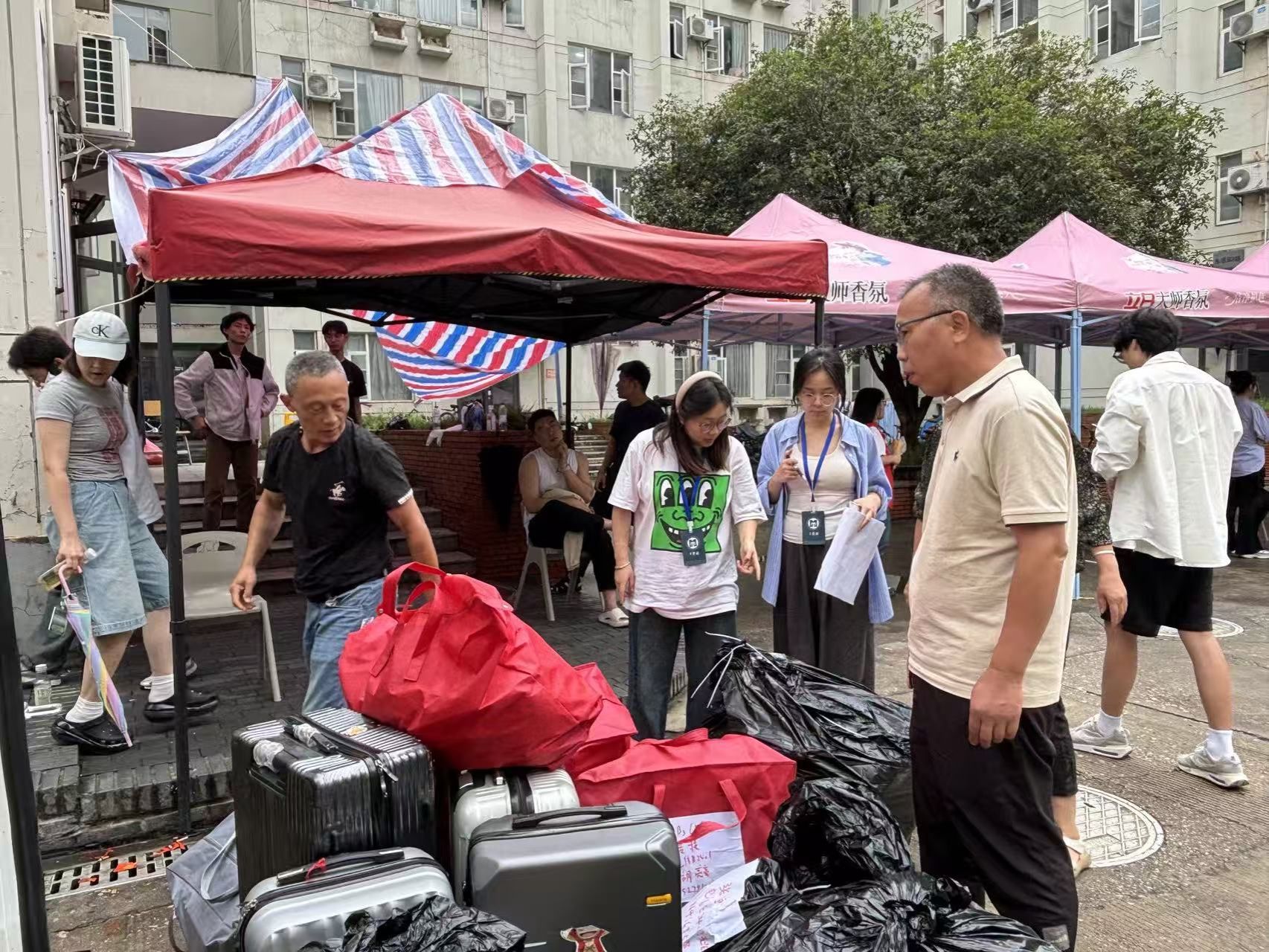 清晨,宿舍楼前一片繁忙。各宿舍楼楼管早早来到负责区域,有的帮学生扛沉重的行李箱,有的拎着大包小包,还不时叮嘱学生注意安全。他们亲切的话语,如同给孩子们最贴心的关怀。尽管汗水湿透衣衫,他们脸上始终洋溢着朴实的笑容,用行动诠释着对学生的关爱与守护。